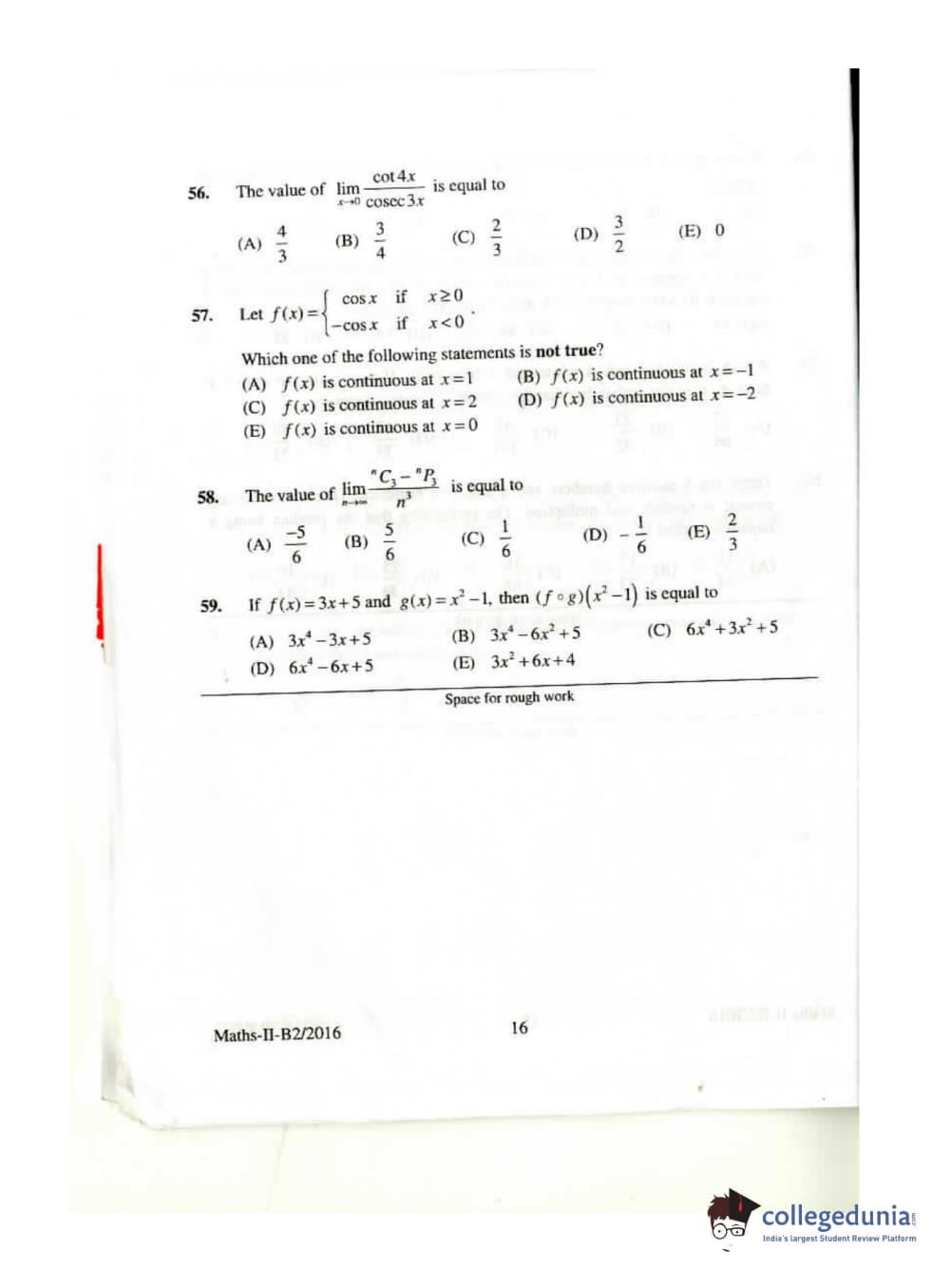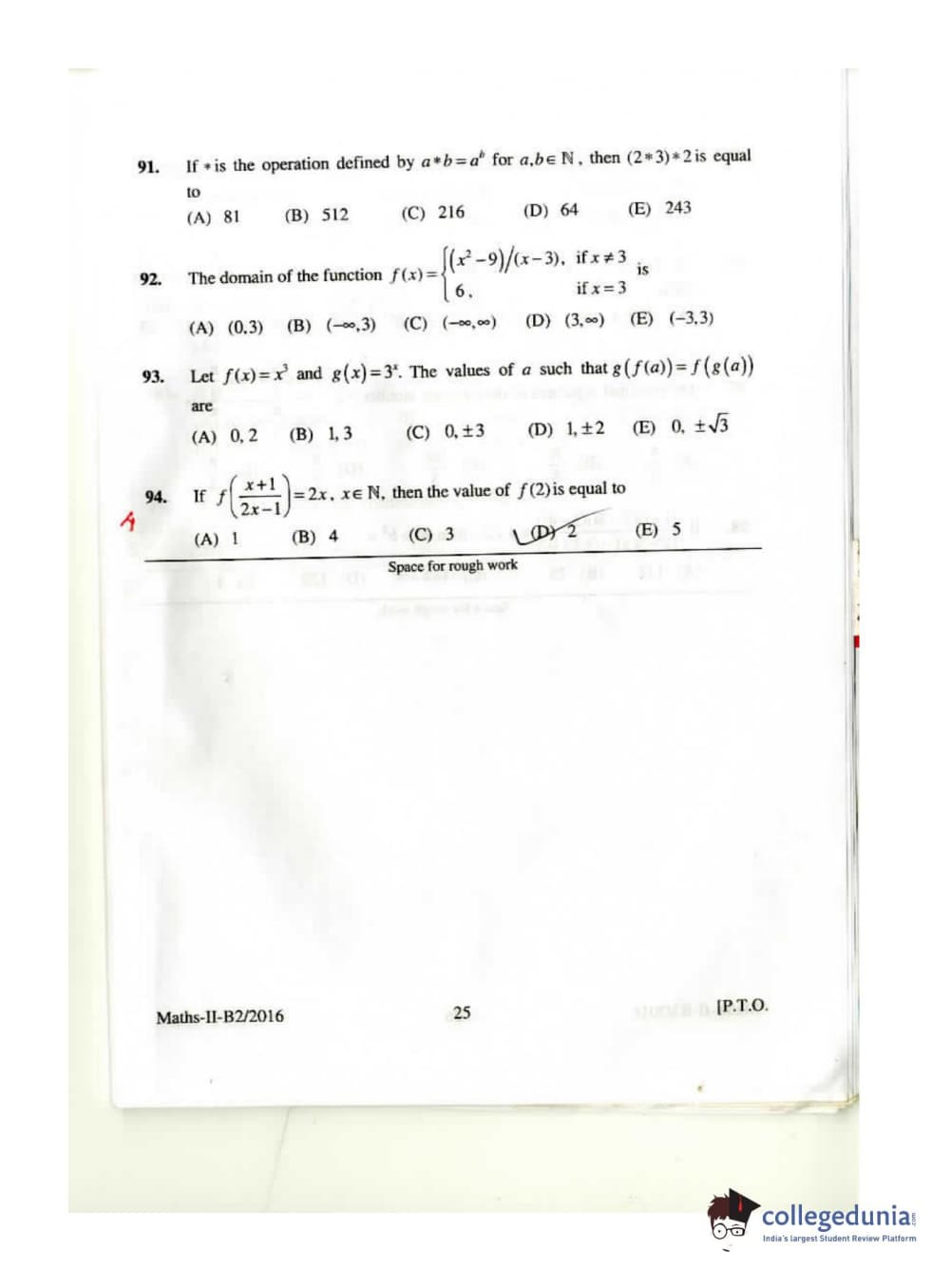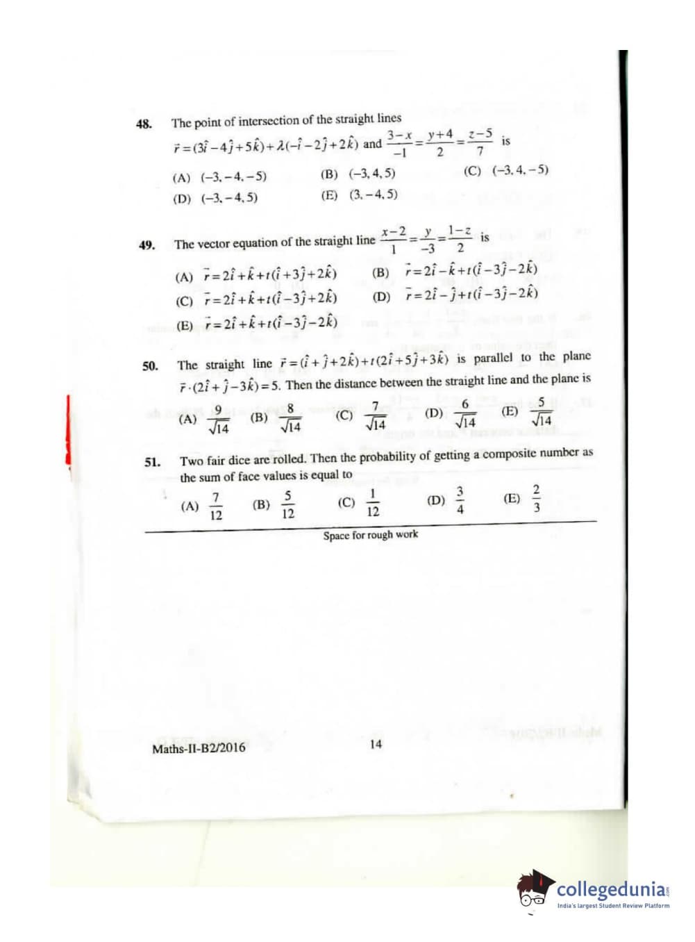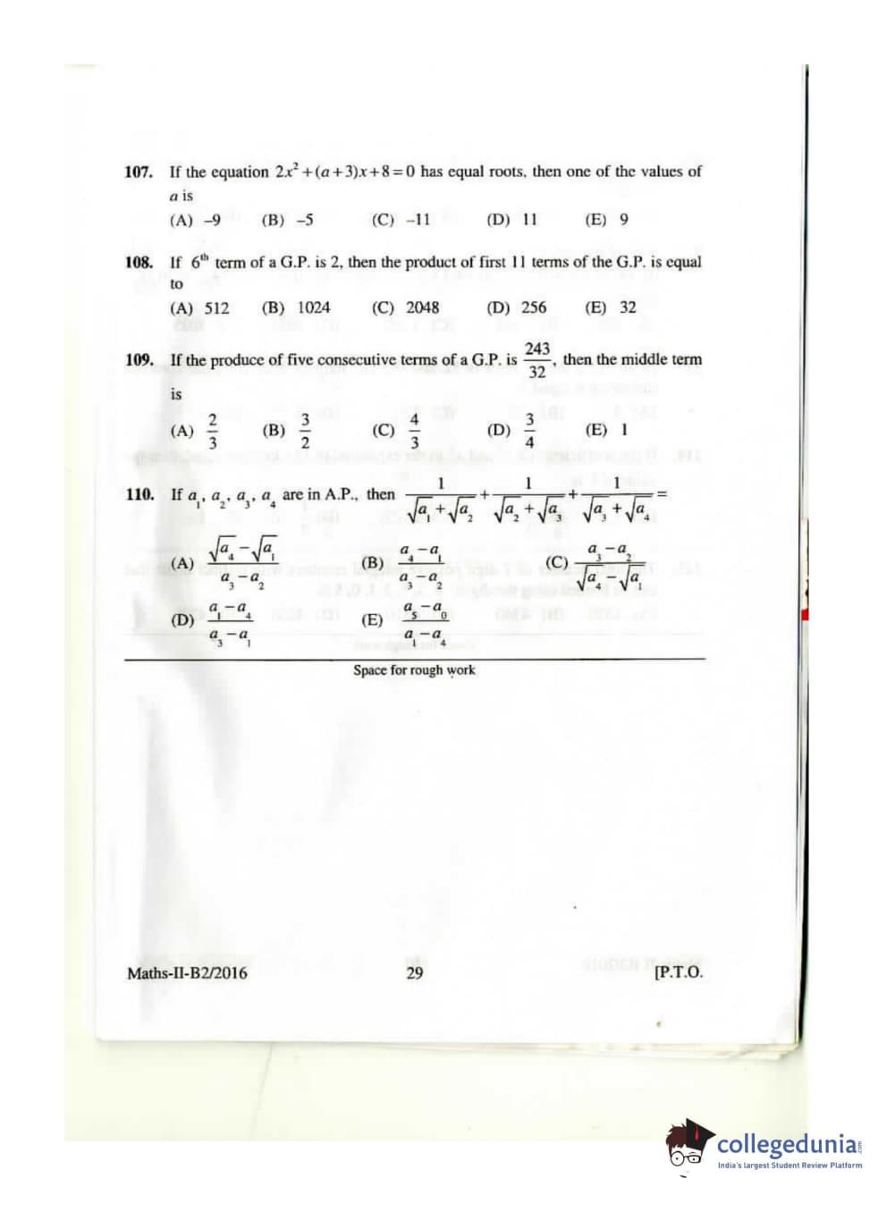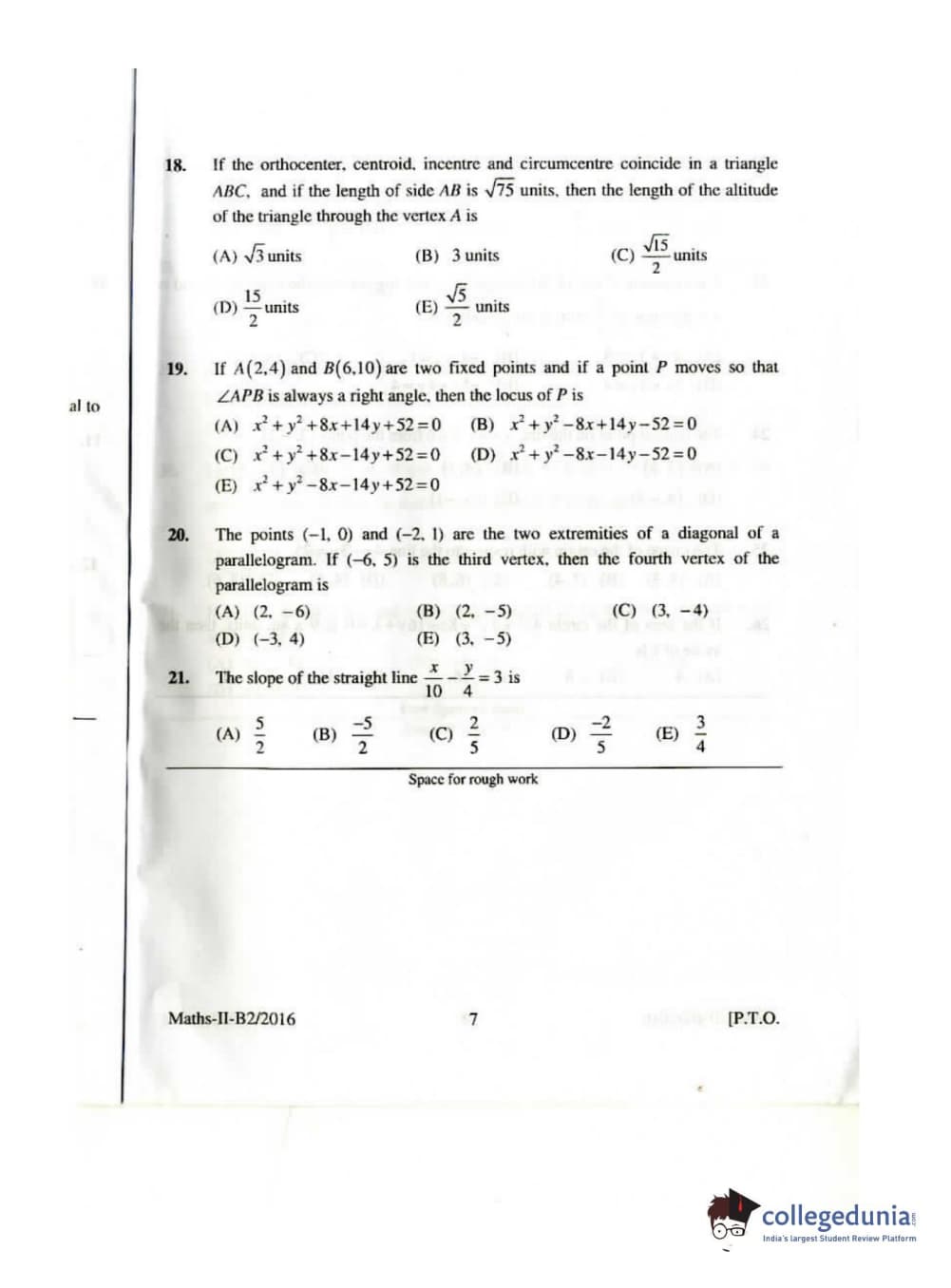 KEAM 2016 Mathematics Question paper with answer key pdf conducted on April 26, 2016 is available for download. The exam was successfully organized by Commissioner of Entrance Examinations Kerala. The question paper comprised a total of 120 questions.