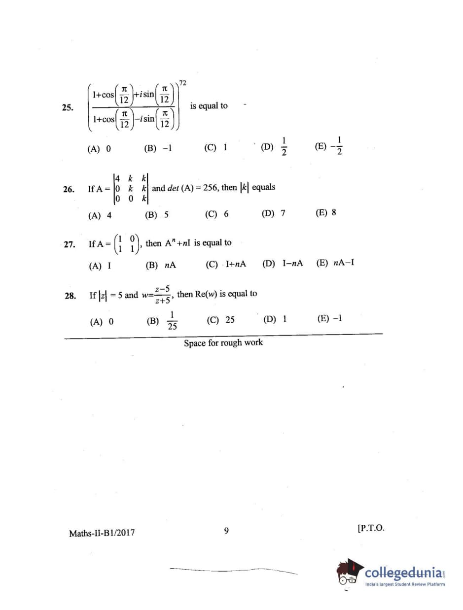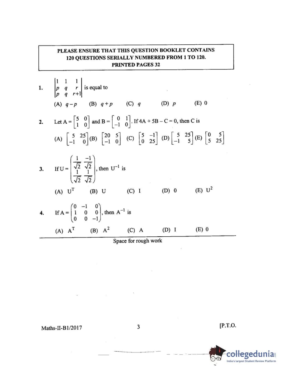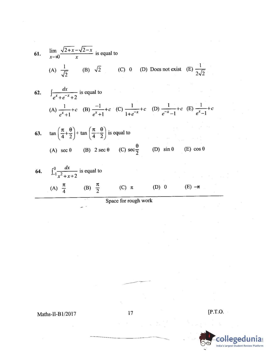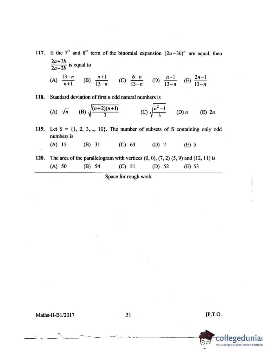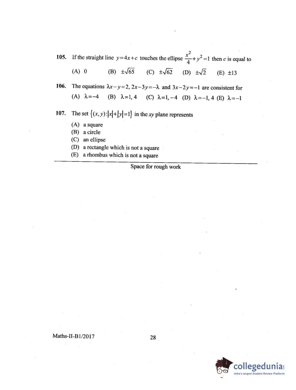 KEAM 2017 Mathematics Question paper with answer key pdf conducted on April 25, 2017 is available for download. The exam was successfully organized by Commissioner of Entrance Examinations Kerala. The question paper comprised a total of 120 questions.