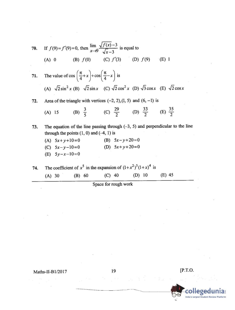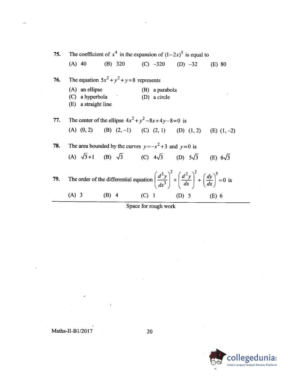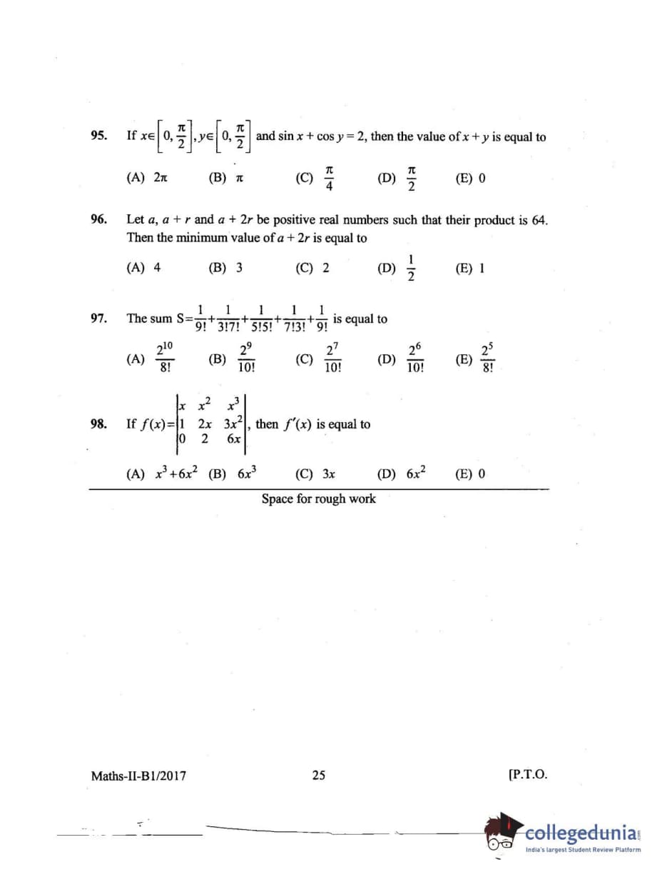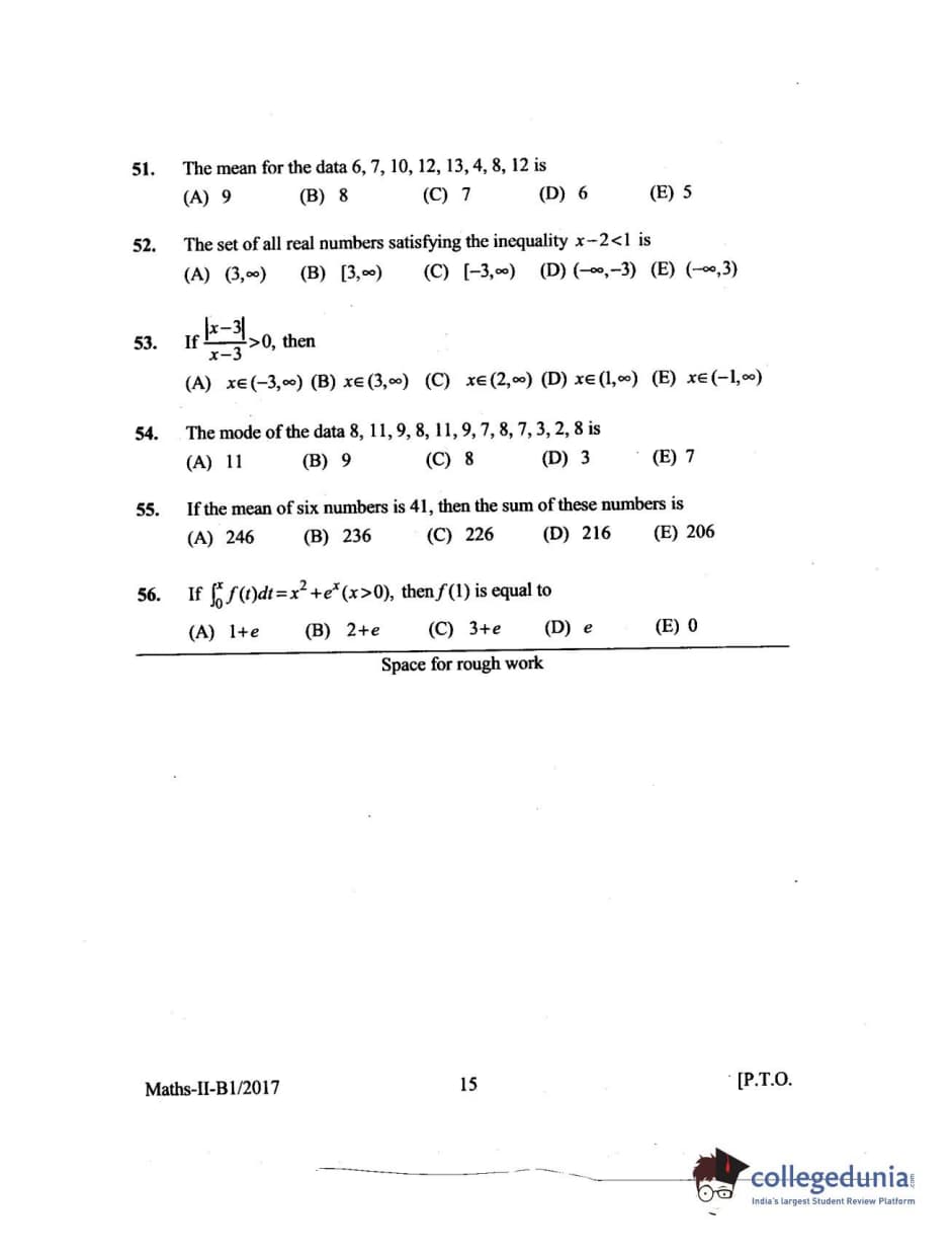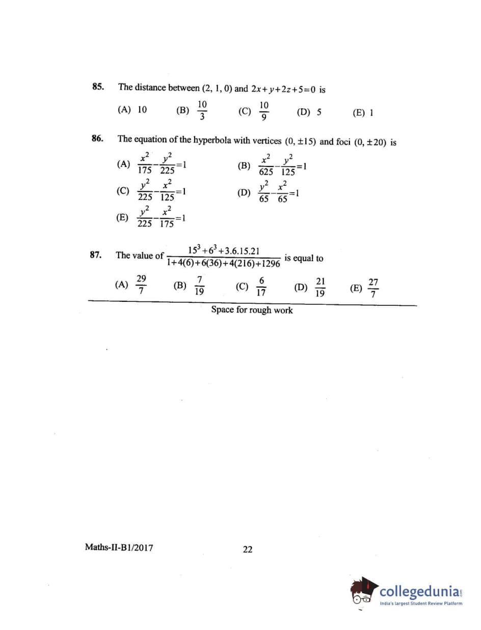 KEAM 2017 Mathematics Question paper with answer key pdf conducted on April 25, 2017 is available for download. The exam was successfully organized by Commissioner of Entrance Examinations Kerala. The question paper comprised a total of 120 questions.