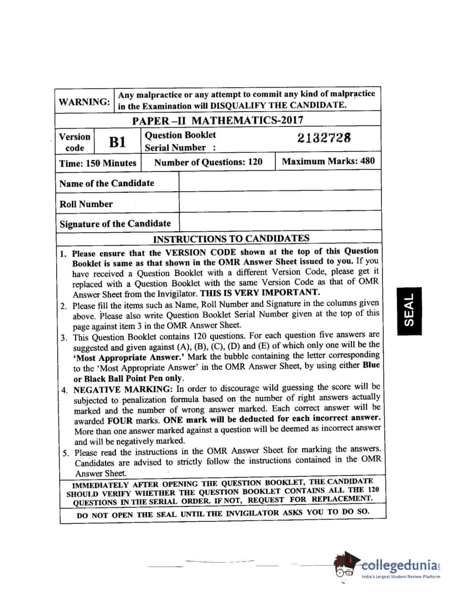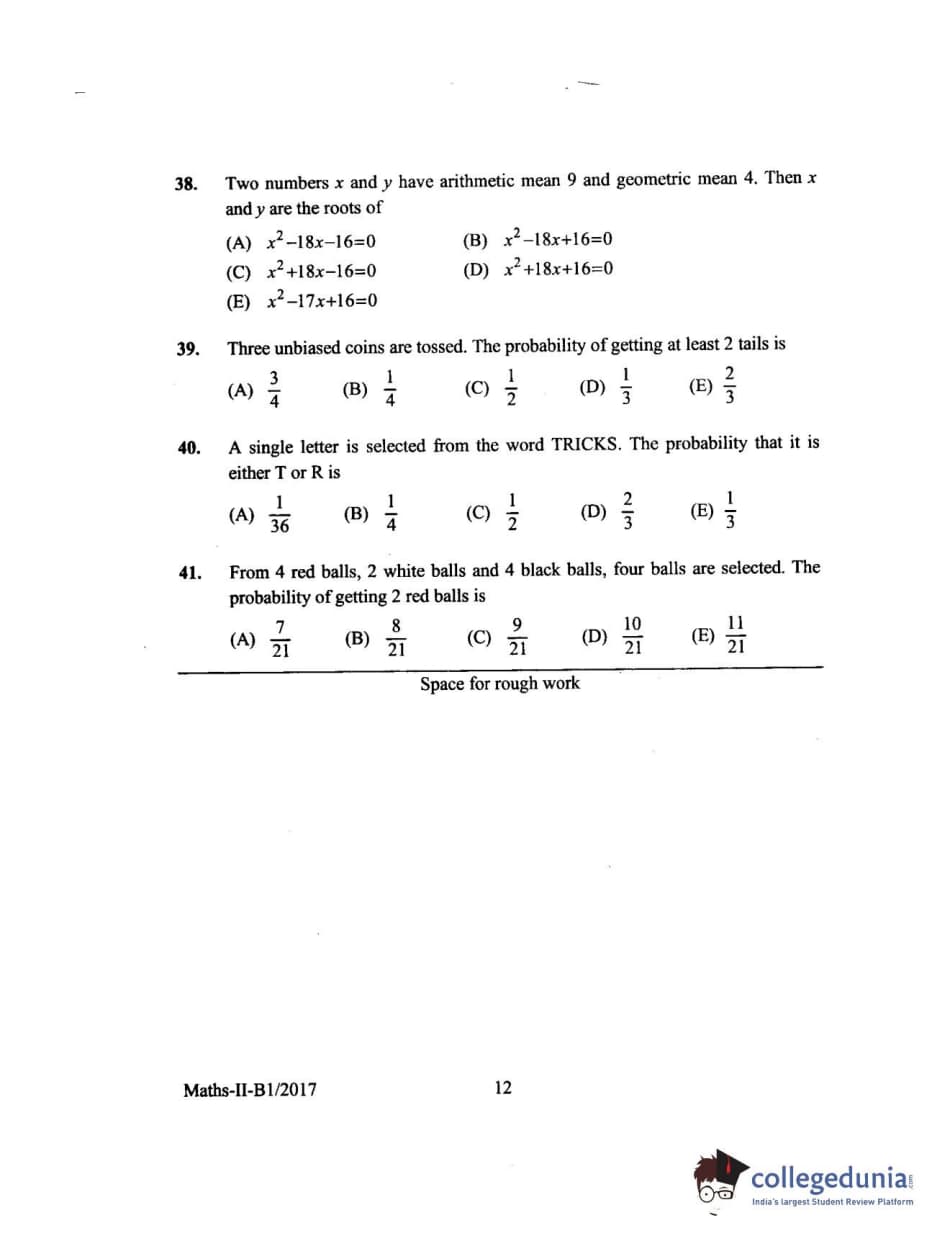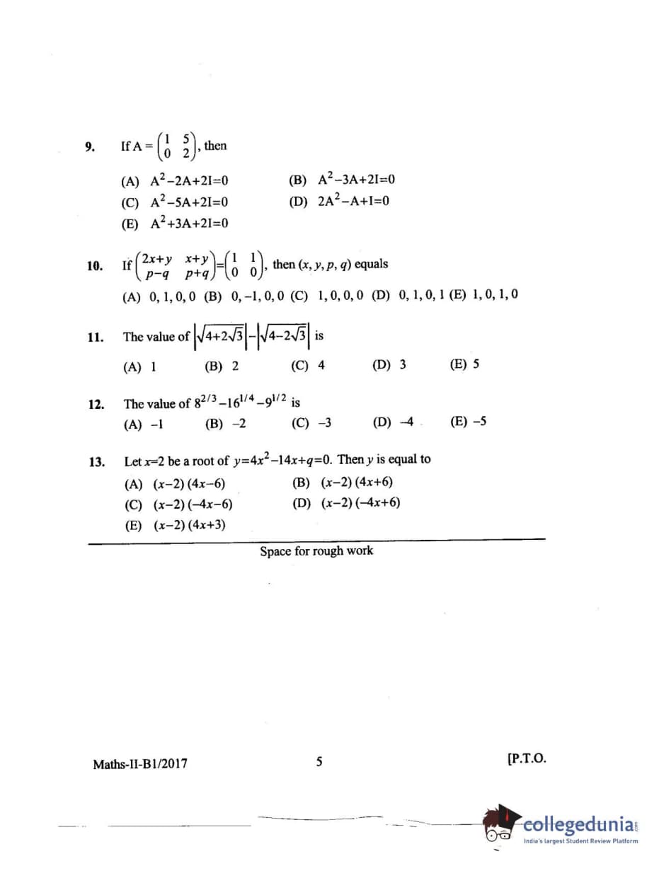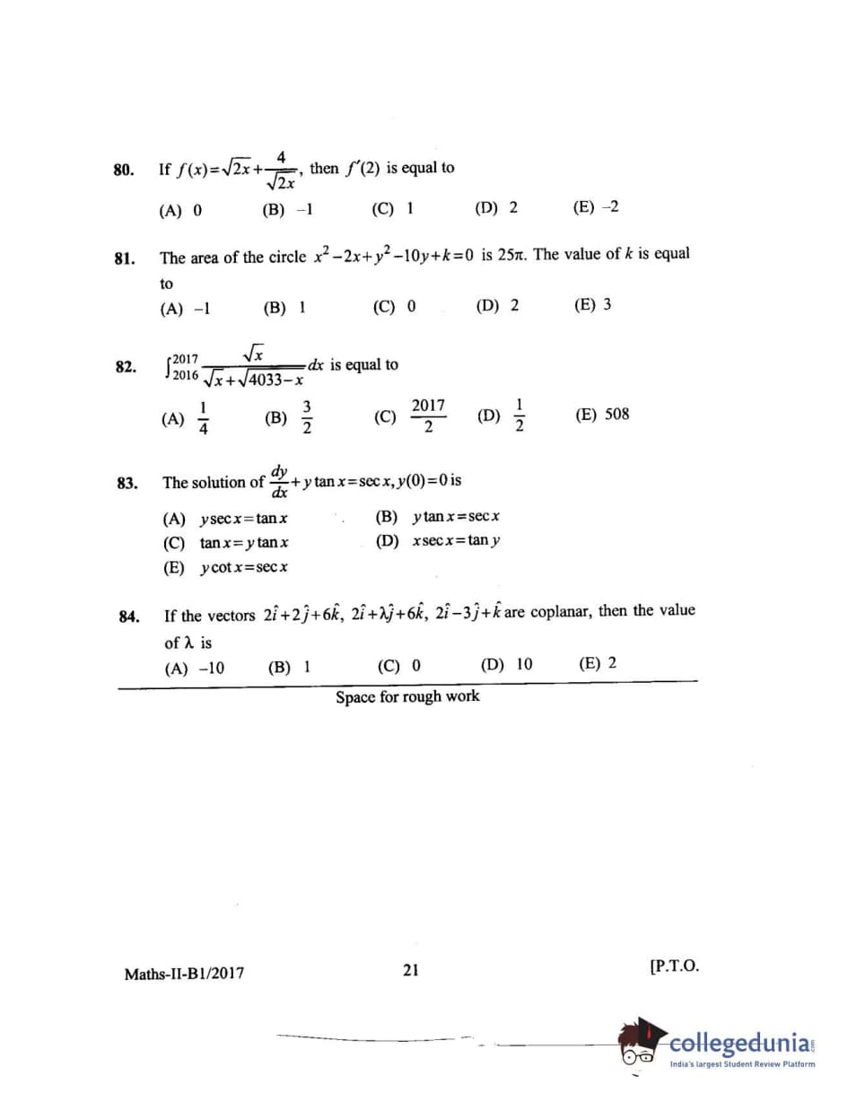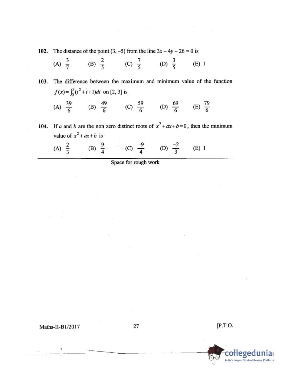 KEAM 2017 Mathematics Question paper with answer key pdf conducted on April 25, 2017 is available for download. The exam was successfully organized by Commissioner of Entrance Examinations Kerala. The question paper comprised a total of 120 questions.