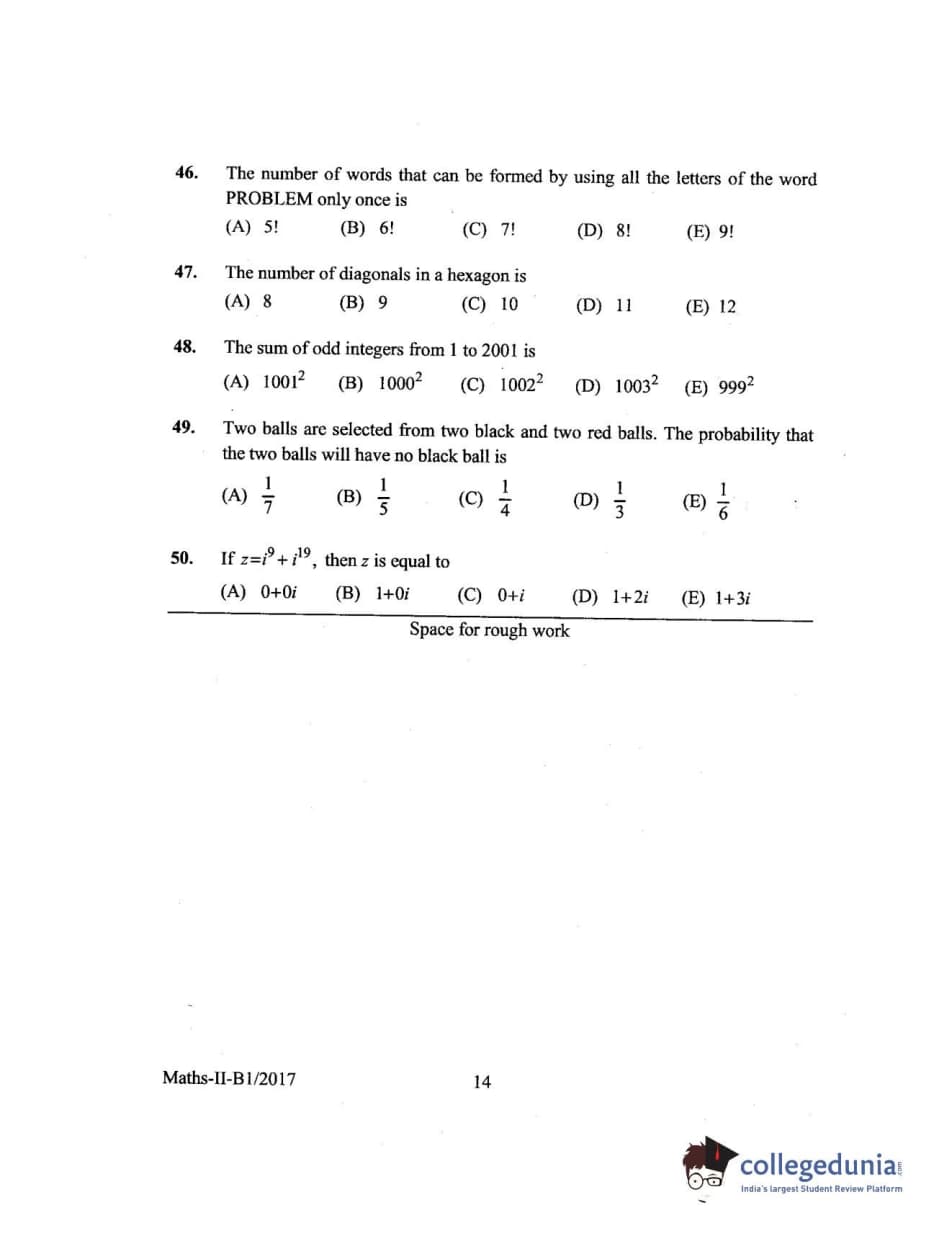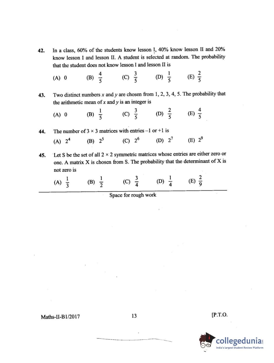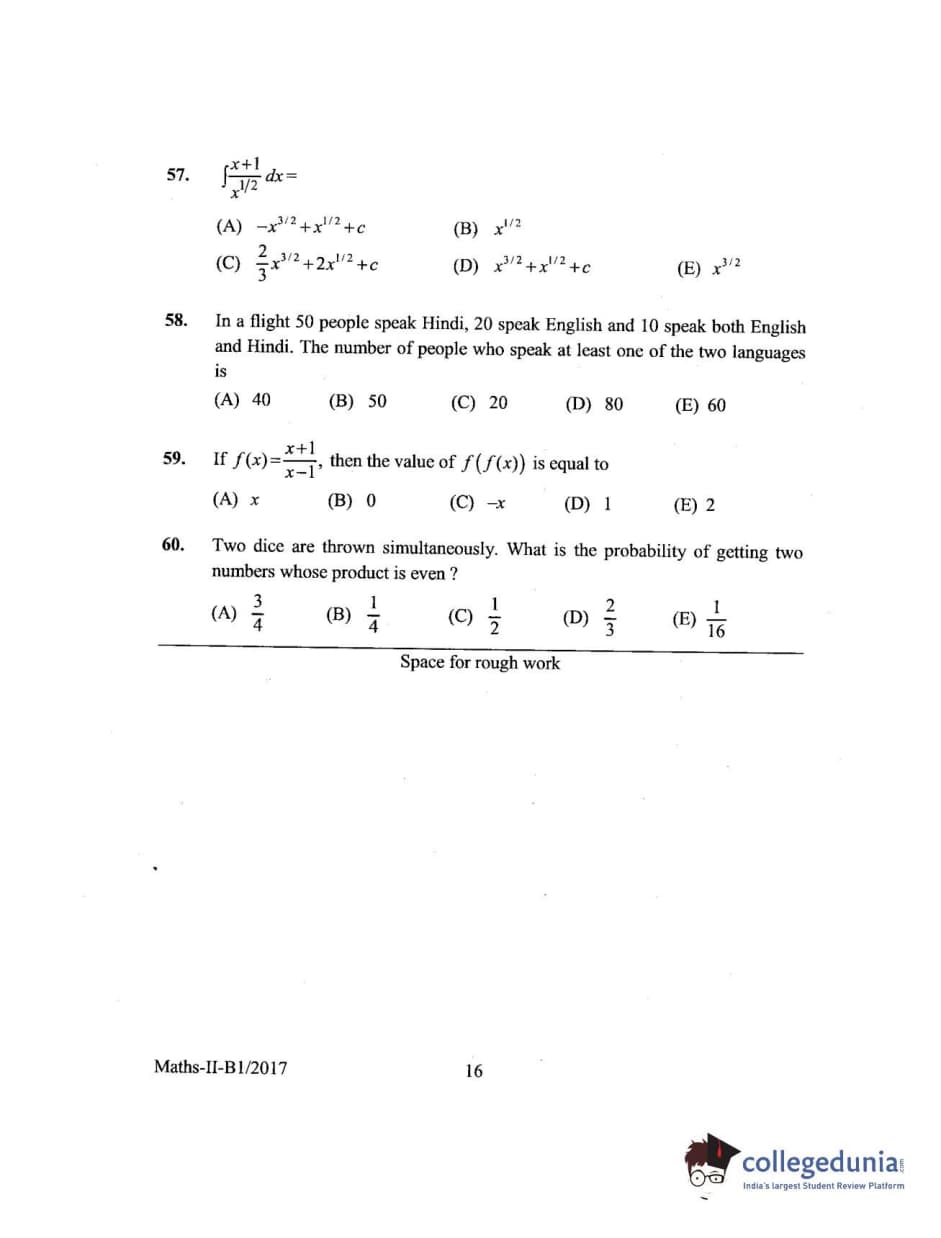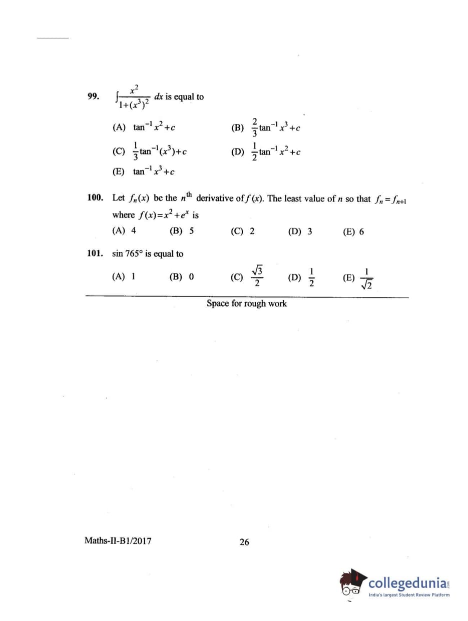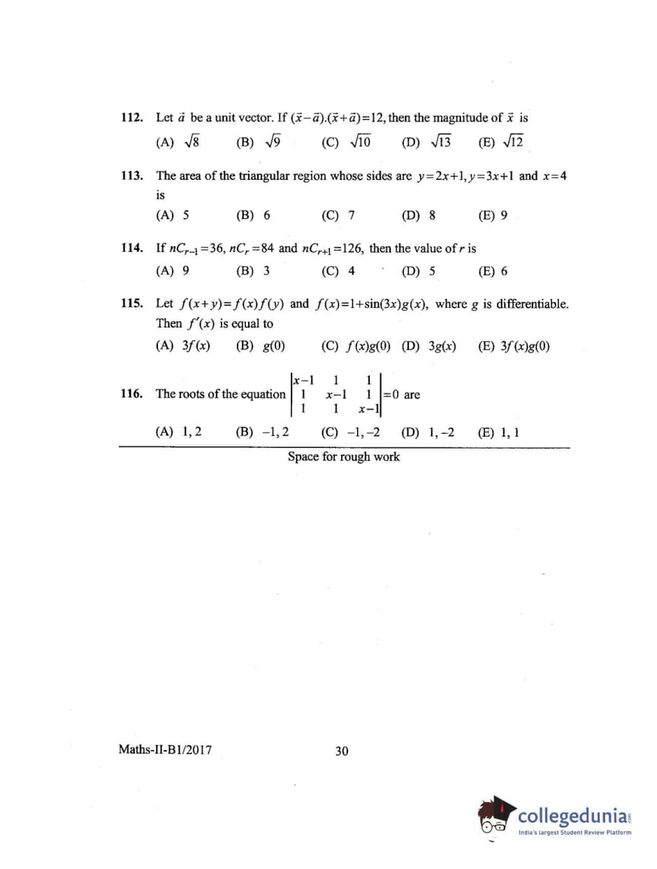 KEAM 2017 Mathematics Question paper with answer key pdf conducted on April 25, 2017 is available for download. The exam was successfully organized by Commissioner of Entrance Examinations Kerala. The question paper comprised a total of 120 questions.