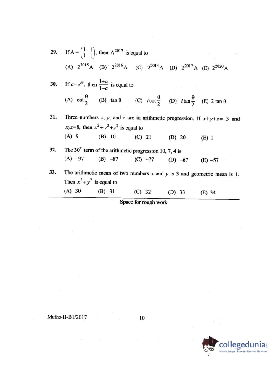KEAM 2017 Mathematics Question Paper with Answer Key PDFs