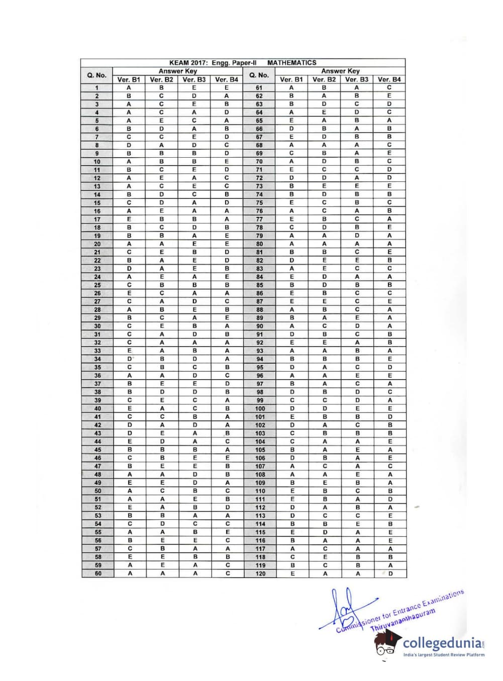 | KEAM 2017 Mathematics Question Paper PDF | KEAM 2017 Mathematics Answer Key PDF |