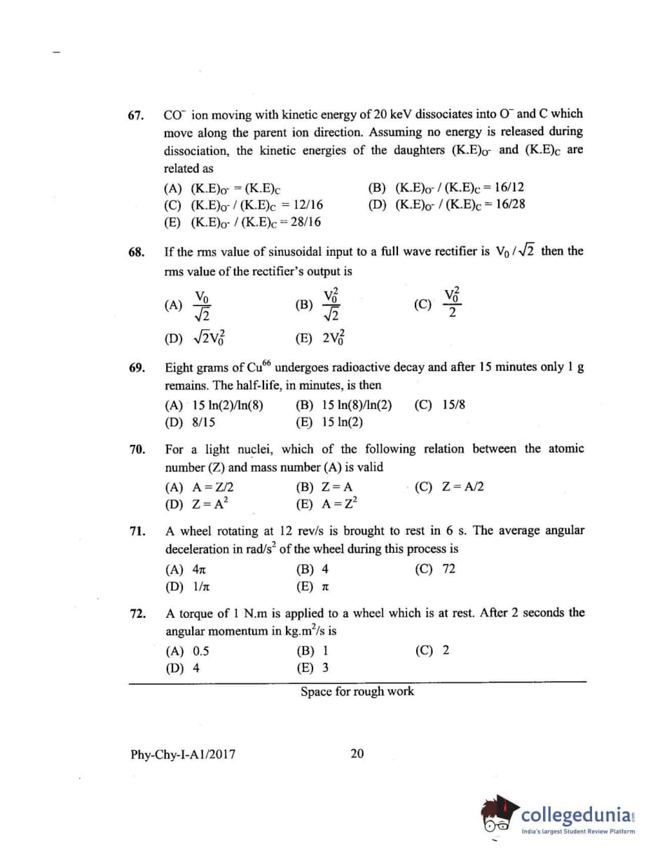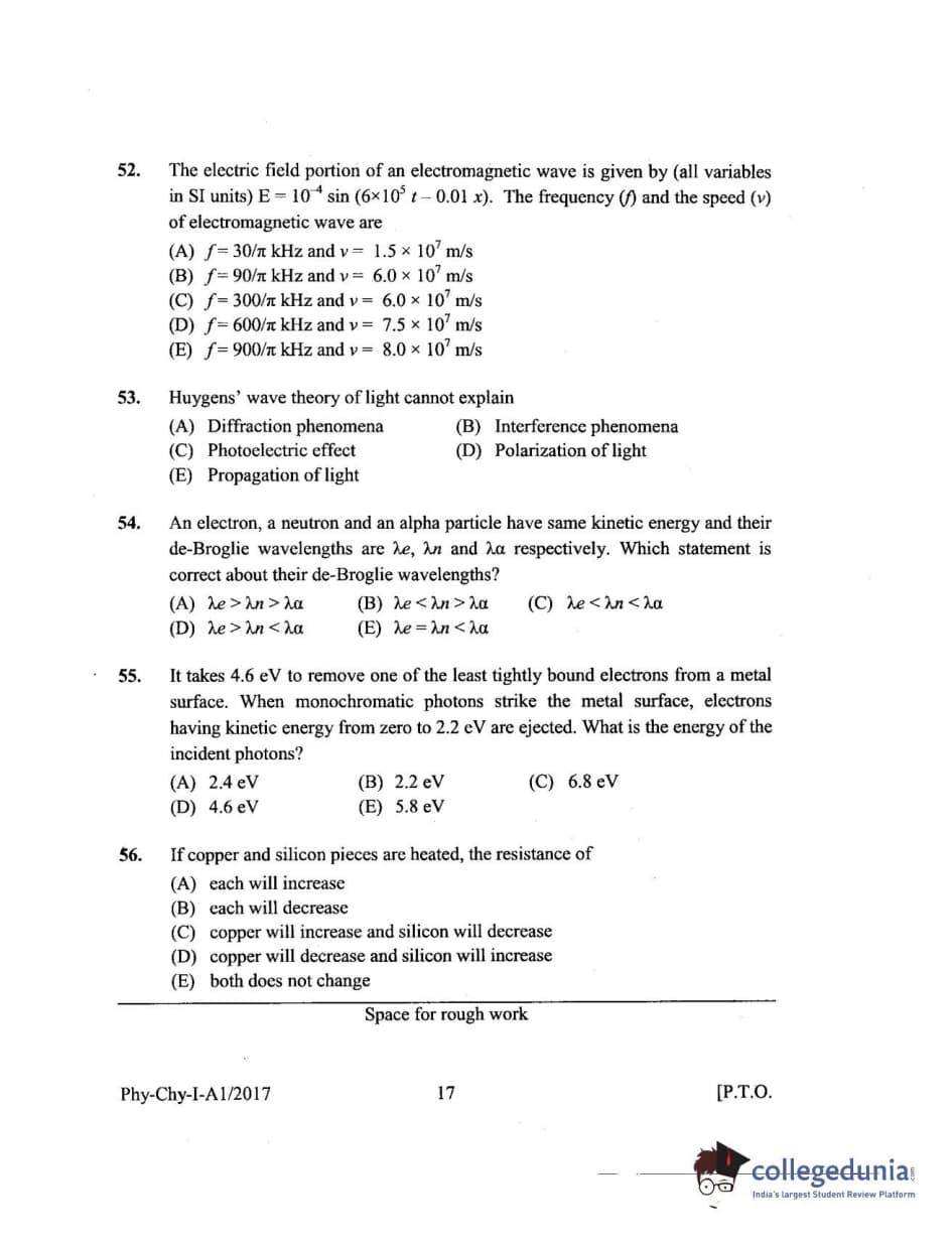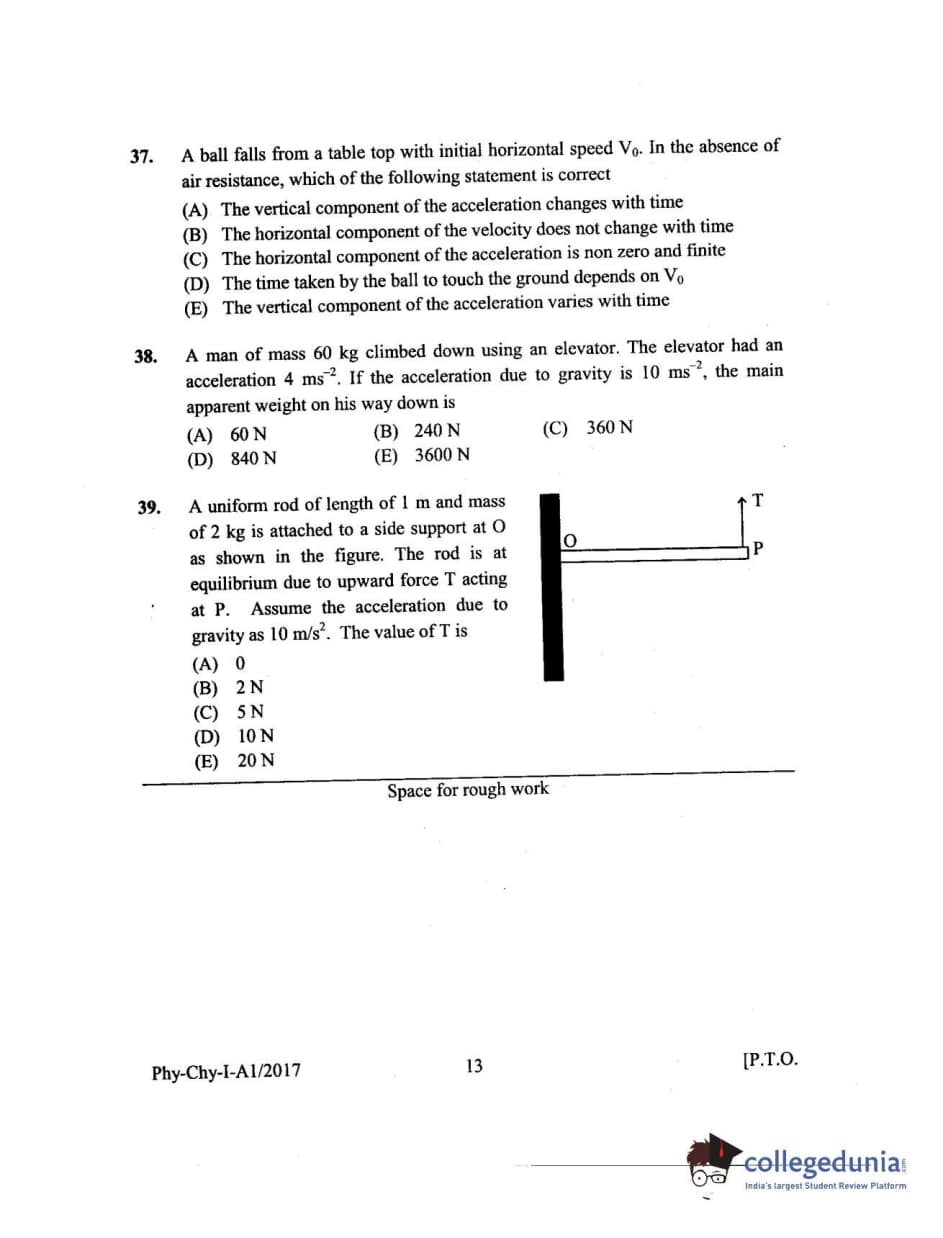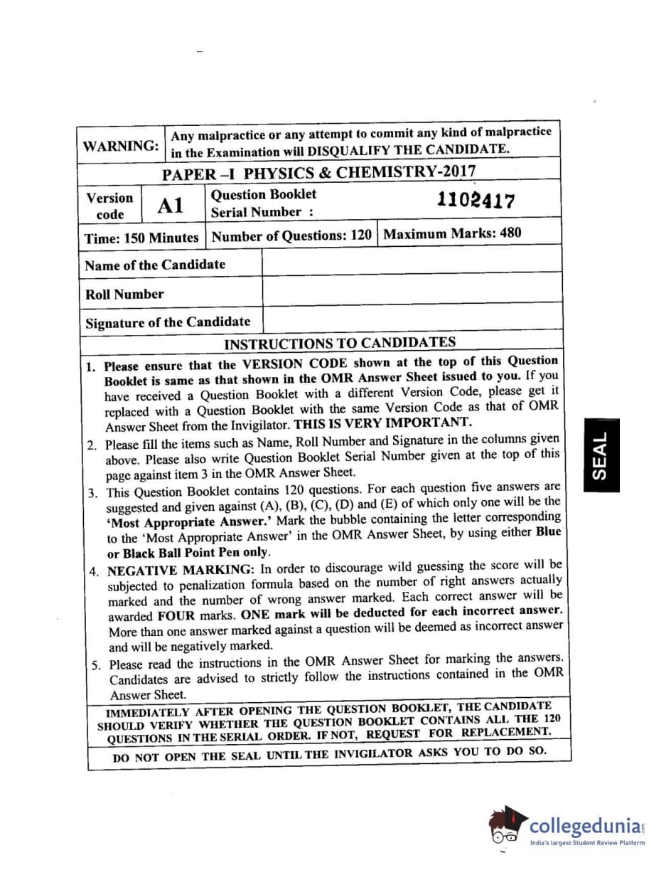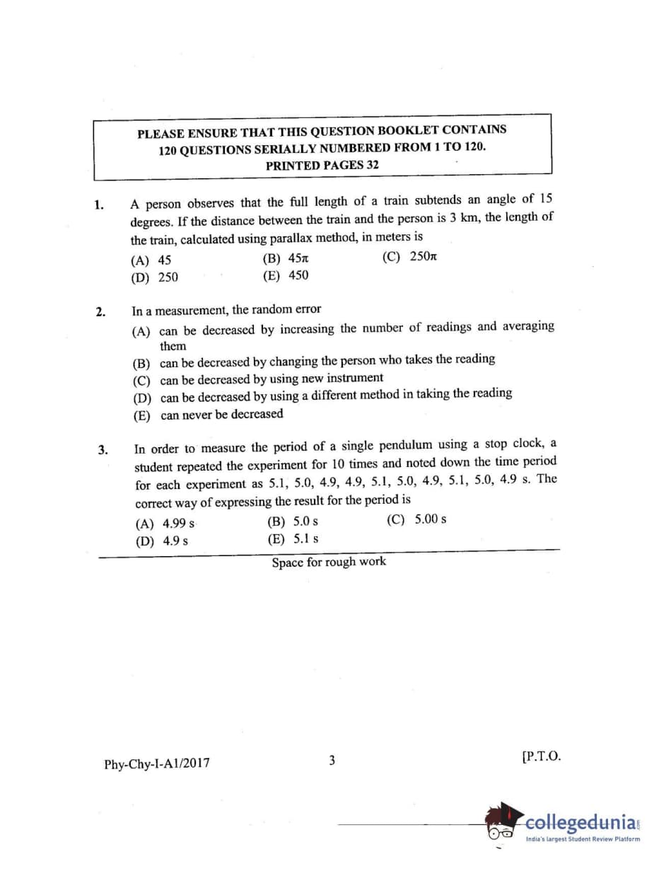 KEAM 2017 Physics & Chemistry Question paper with answer key pdf conducted on April 24, 2017 is available for download. The exam was successfully organized by Commissioner of Entrance Examinations Kerala. The question paper comprised a total of 120 questions.