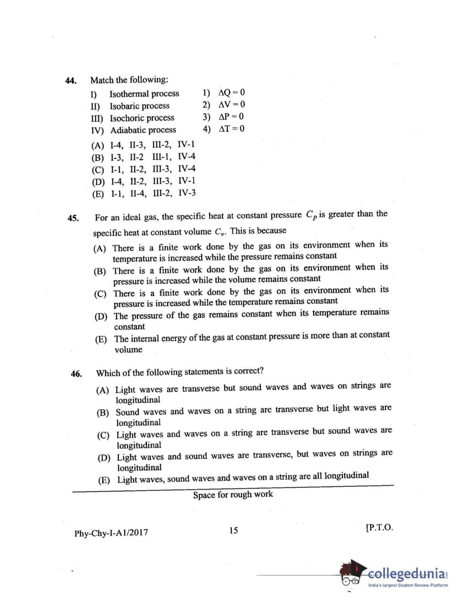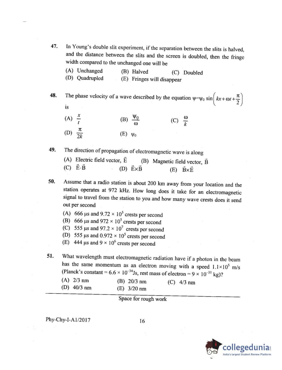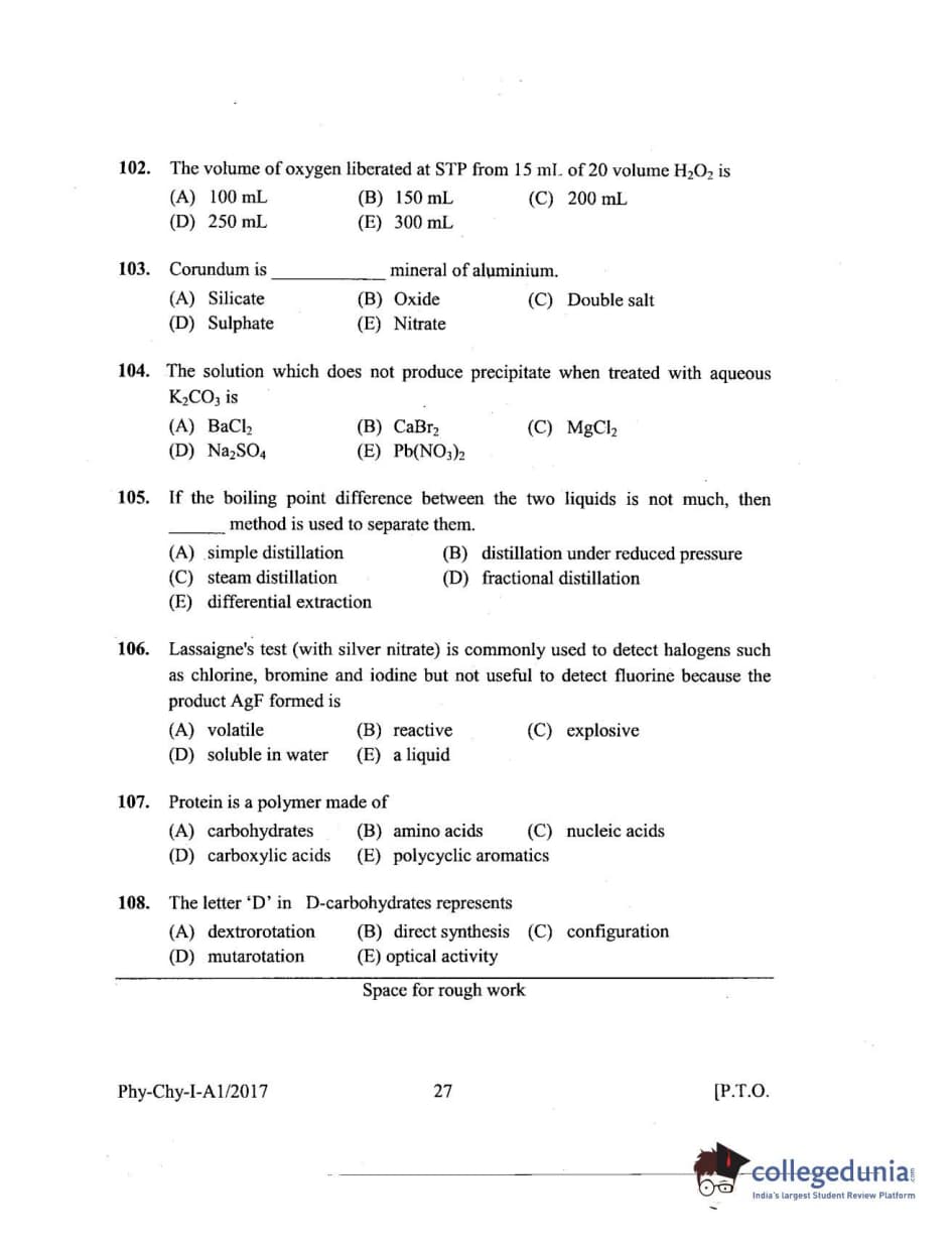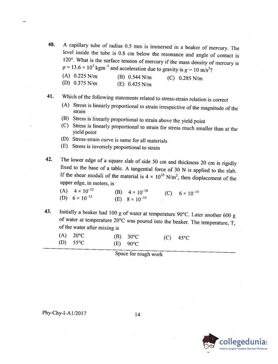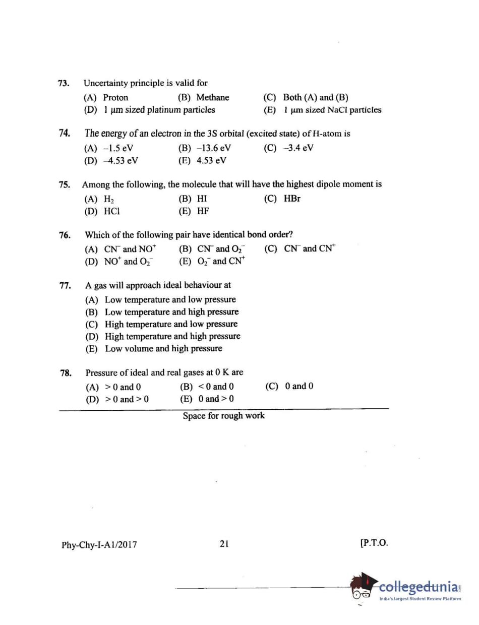 KEAM 2017 Physics & Chemistry Question paper with answer key pdf conducted on April 24, 2017 is available for download. The exam was successfully organized by Commissioner of Entrance Examinations Kerala. The question paper comprised a total of 120 questions.