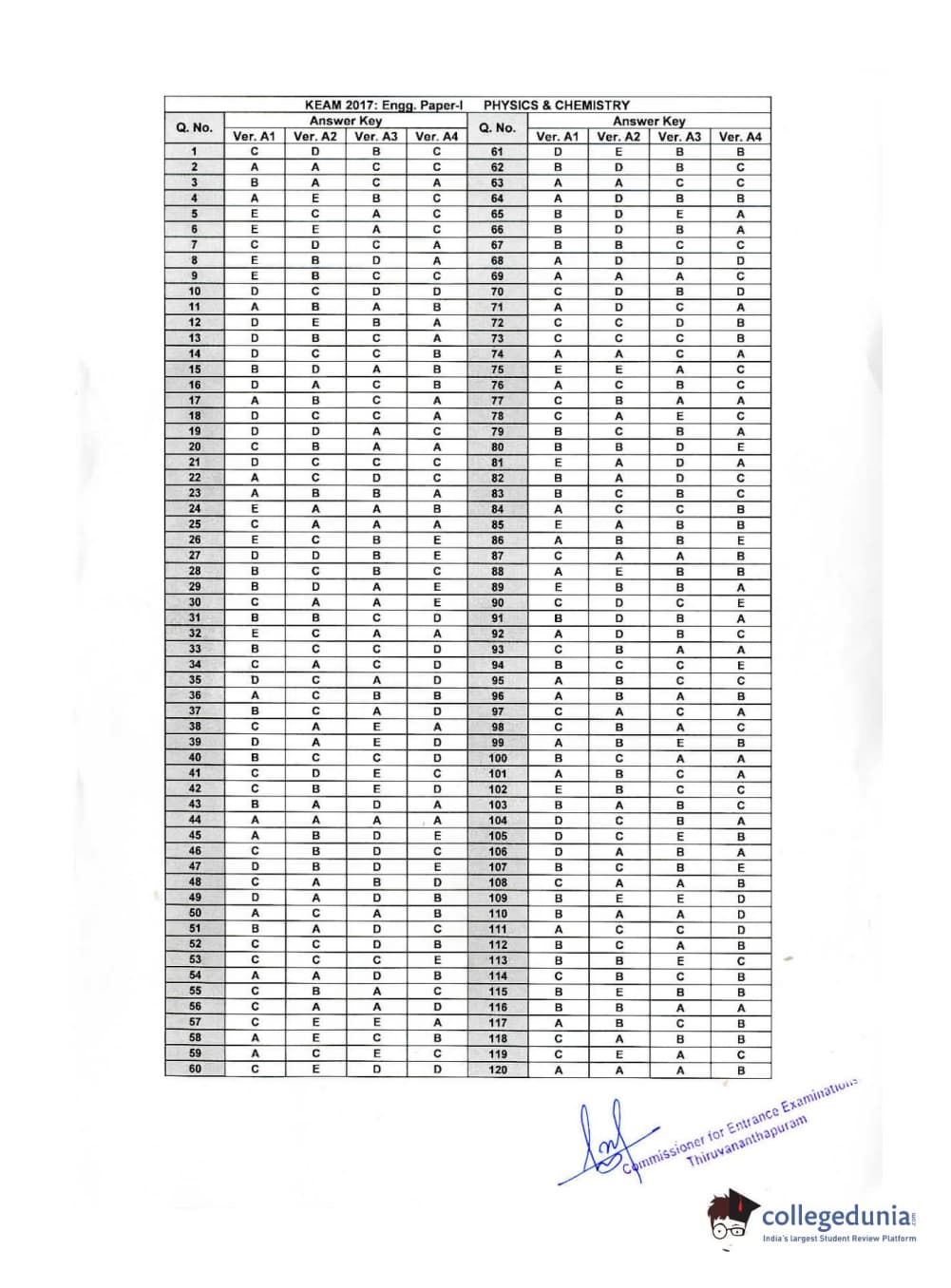| KEAM 2017 Physics & Chemistry Question Paper PDF | KEAM 2017 Physics & Chemistry Answer Key PDF |