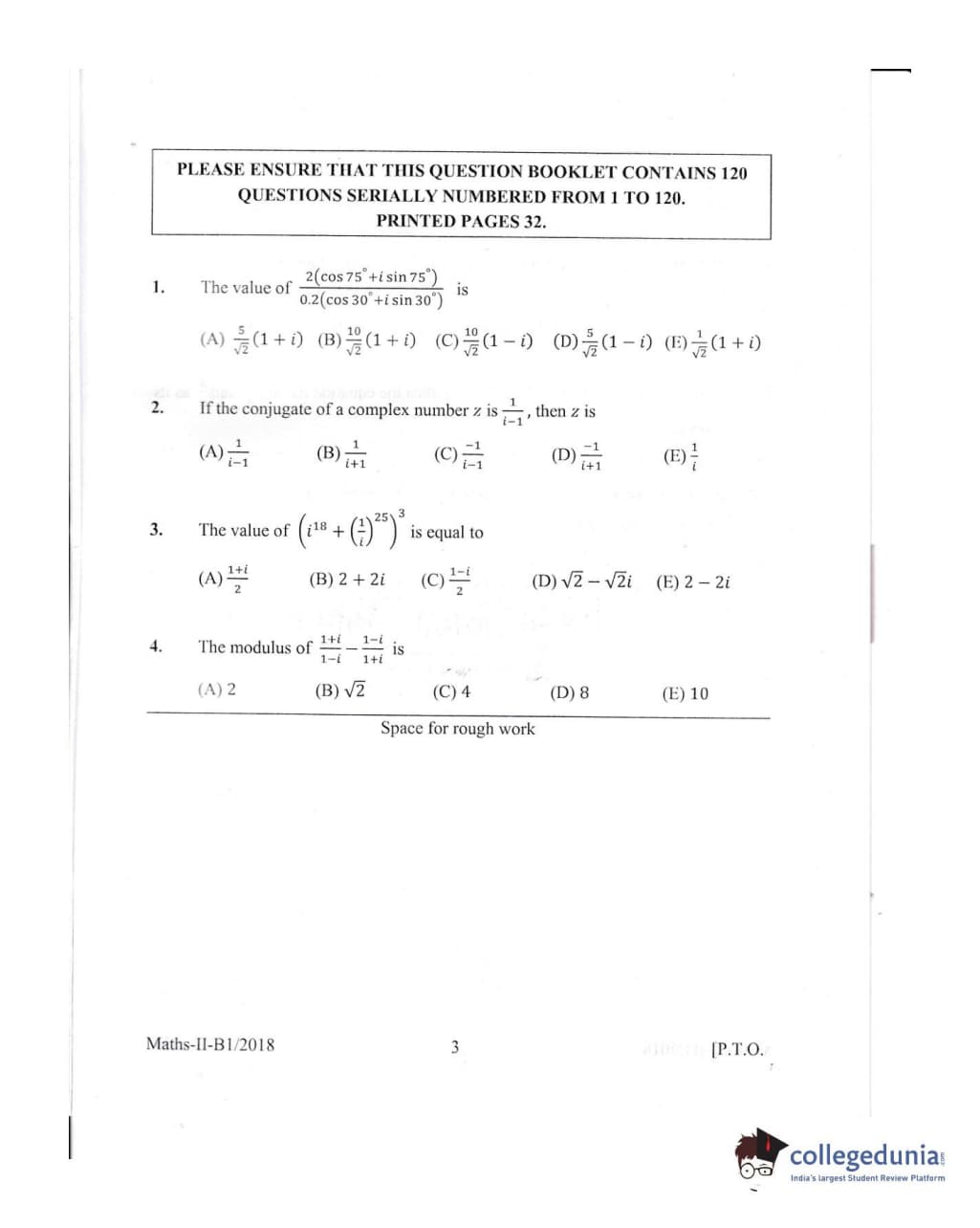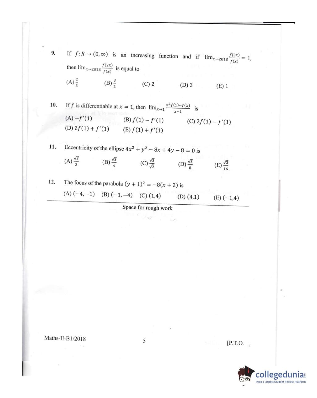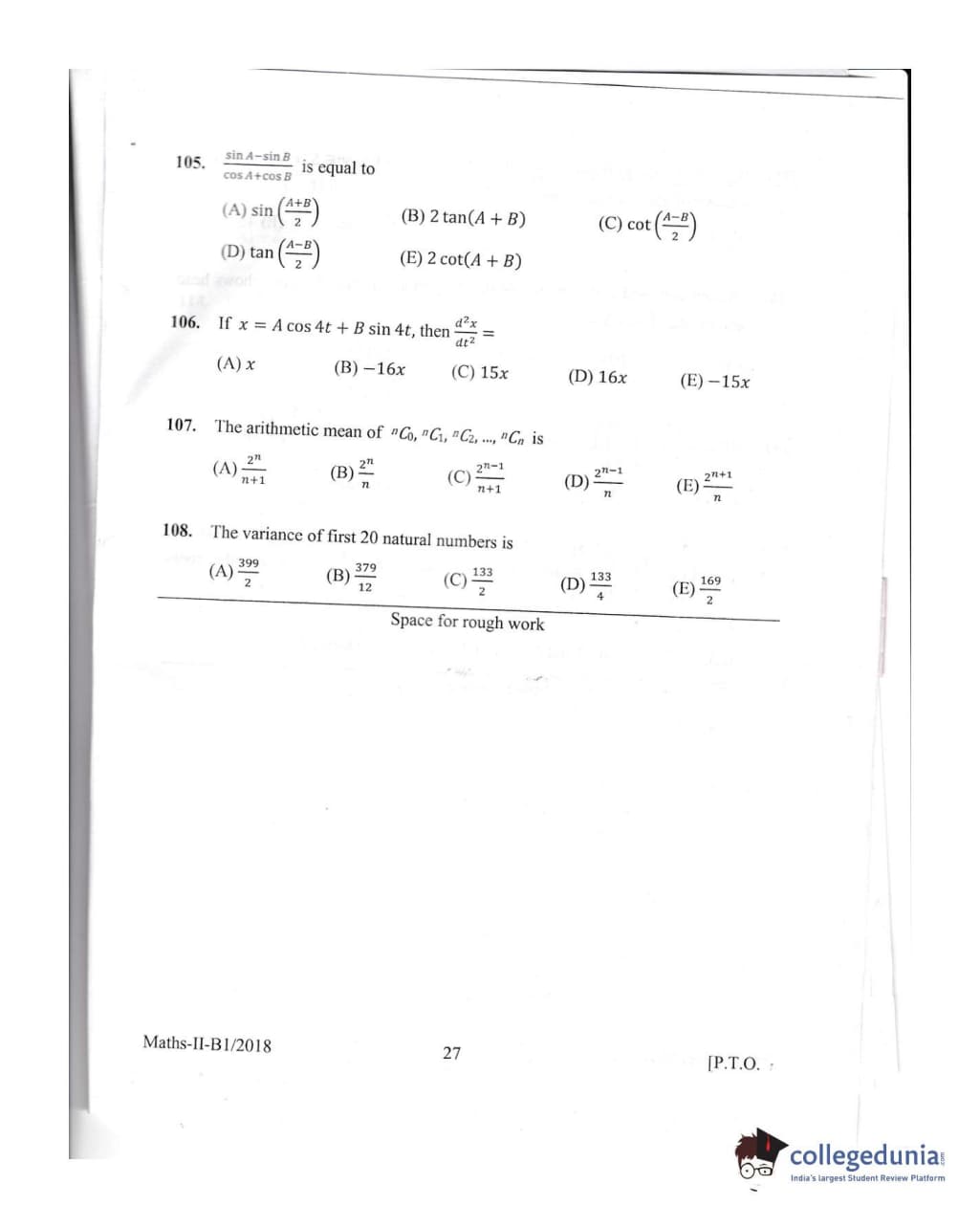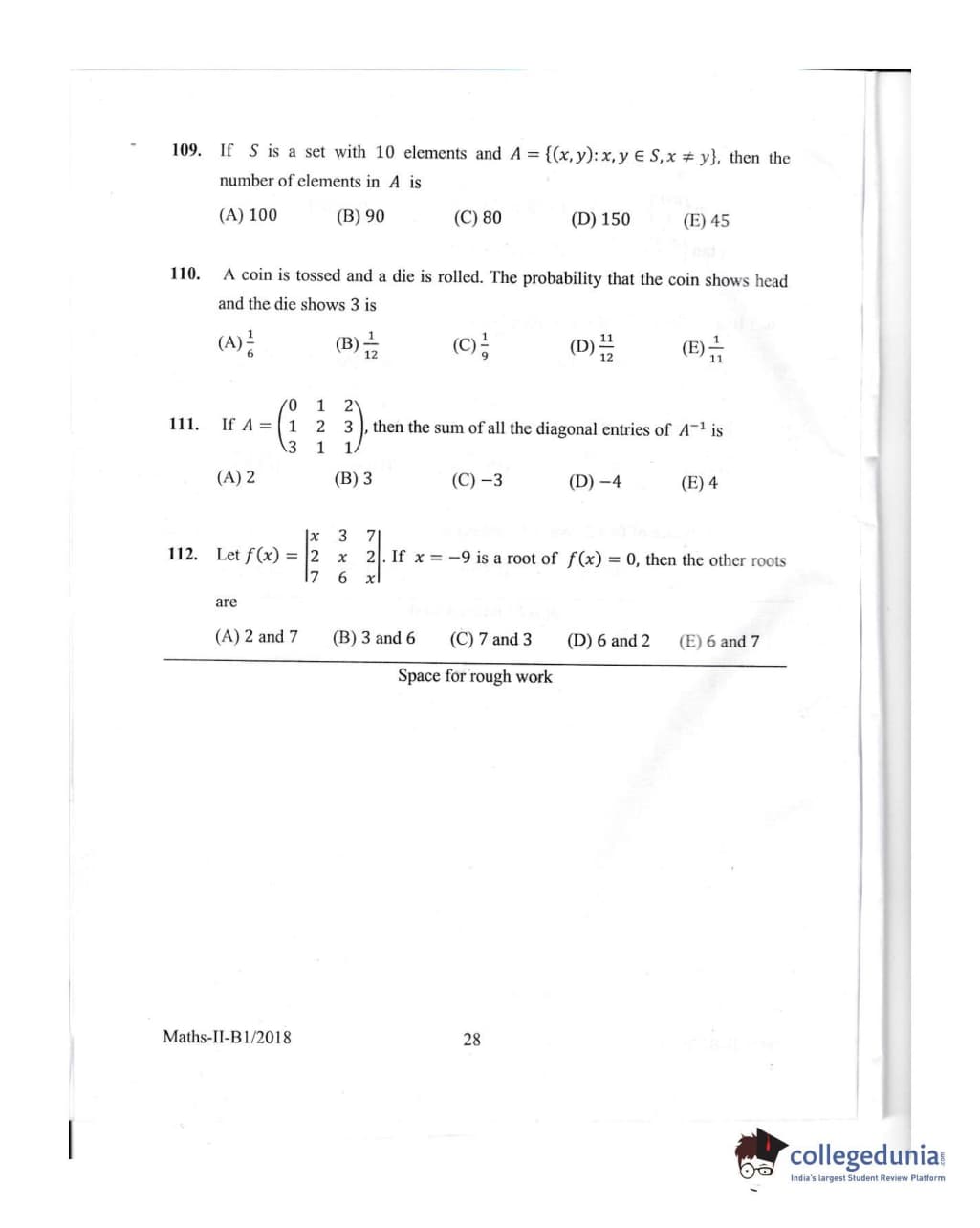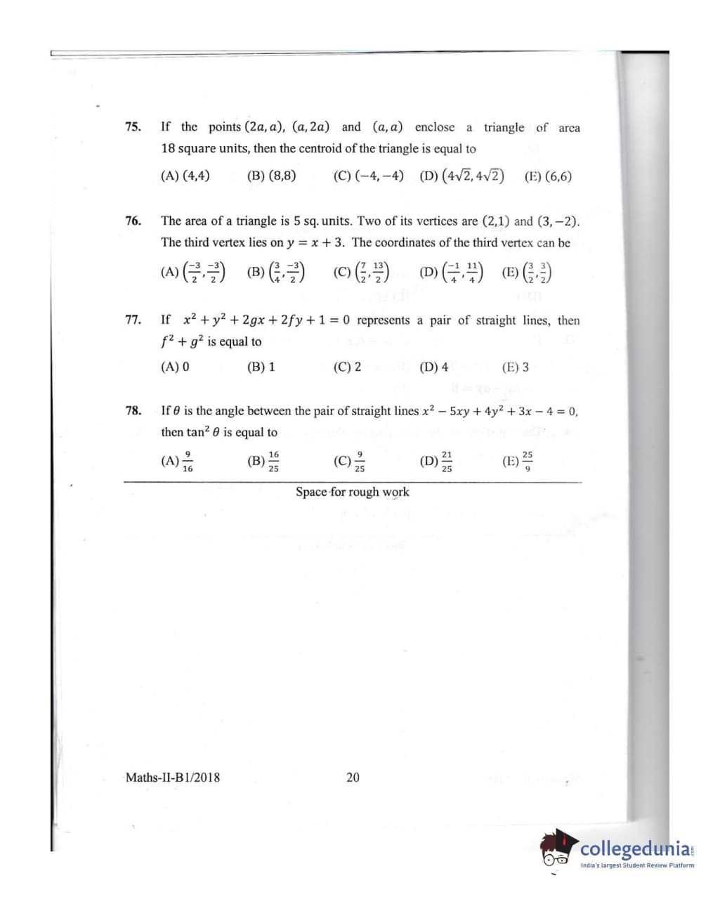 KEAM 2018 Mathematics Question paper with answer key pdf conducted on April 24, 2018 is available for download. The exam was successfully organized by Commissioner of Entrance Examinations Kerala. The question paper comprised a total of 120 questions.