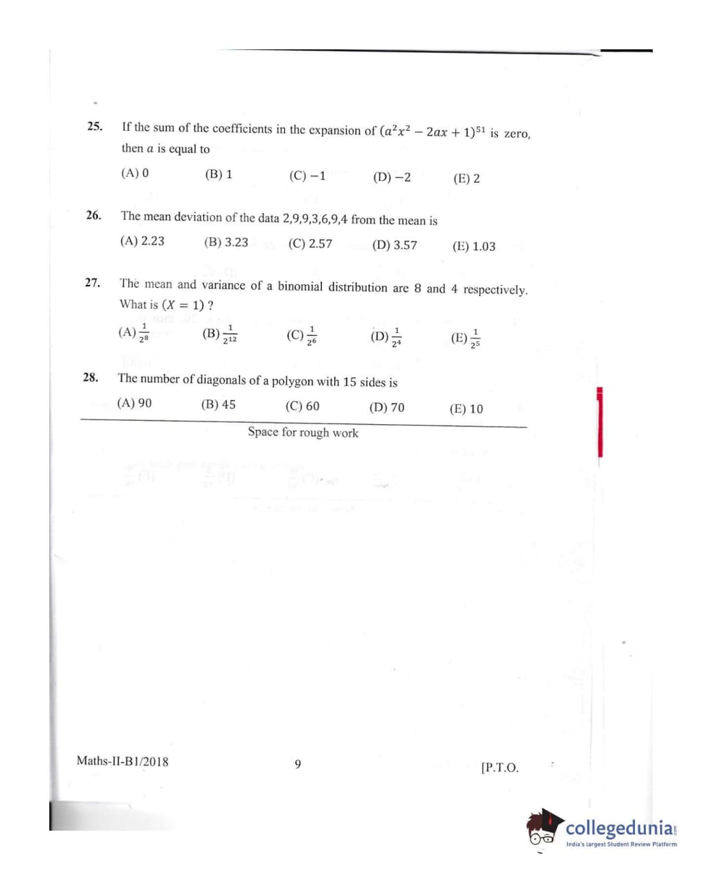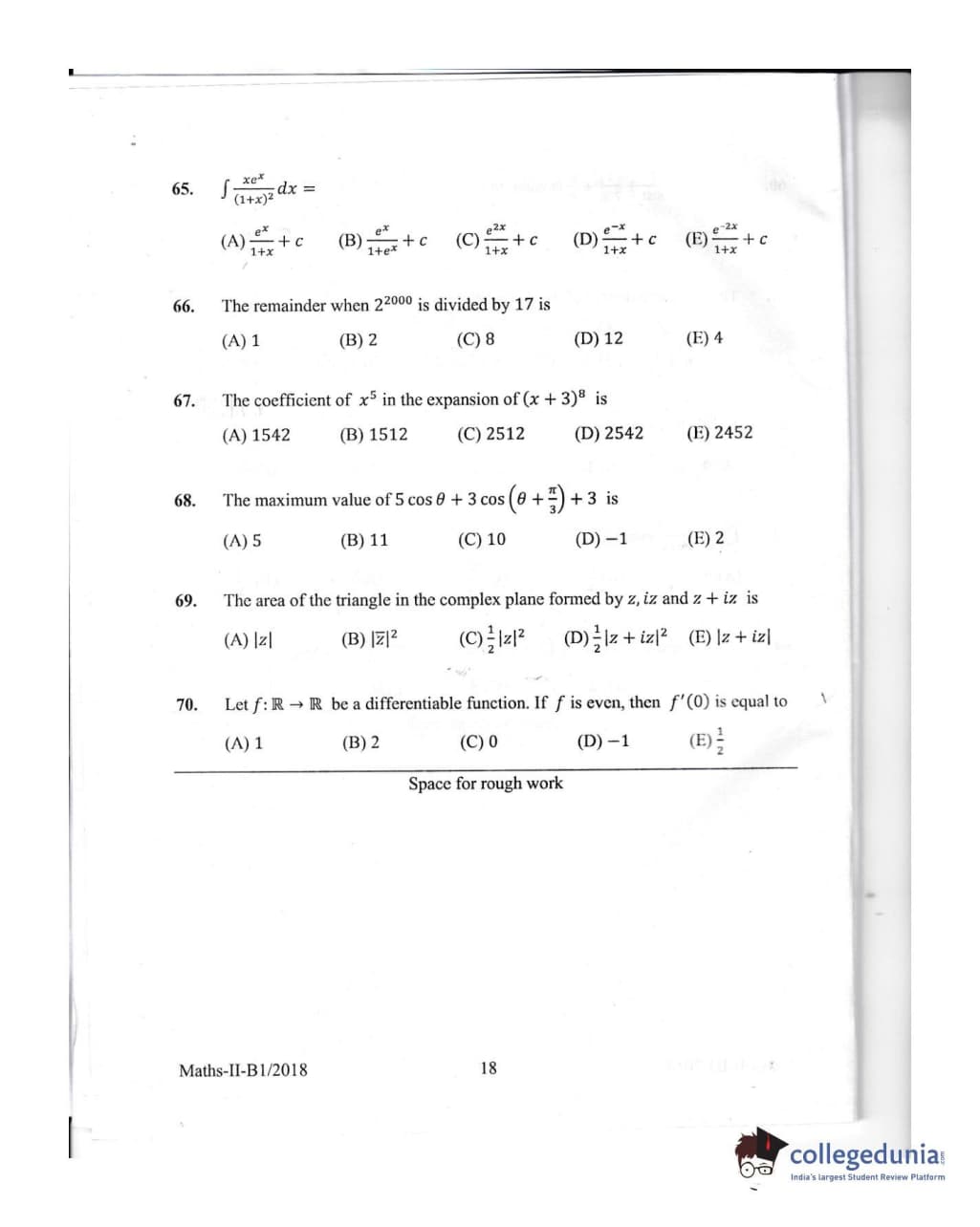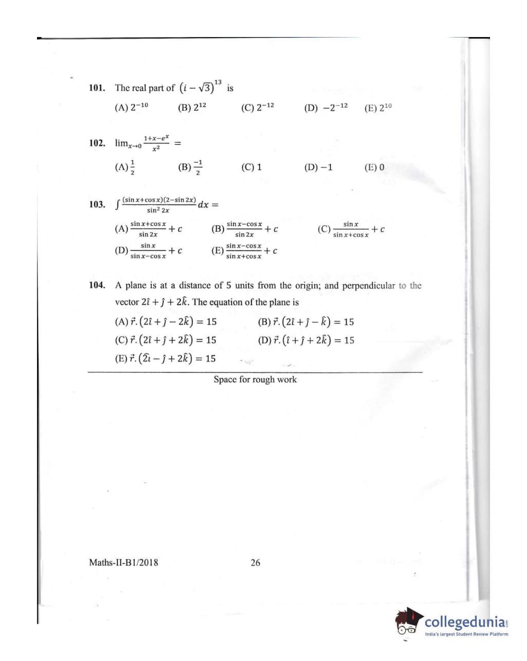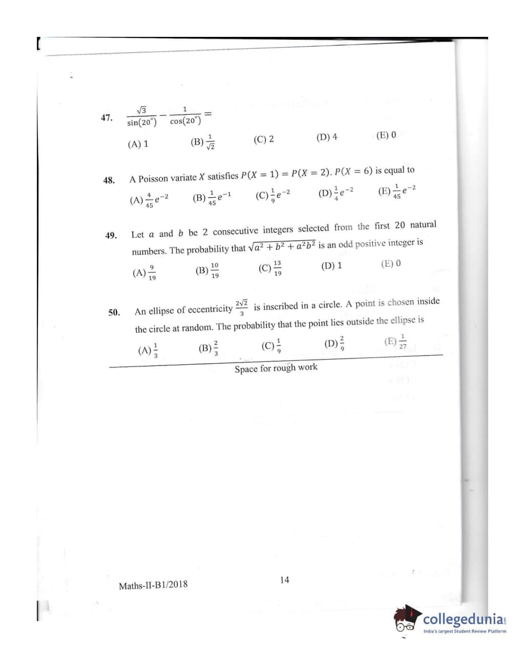 KEAM 2018 Mathematics Question paper with answer key pdf conducted on April 24, 2018 is available for download. The exam was successfully organized by Commissioner of Entrance Examinations Kerala. The question paper comprised a total of 120 questions.