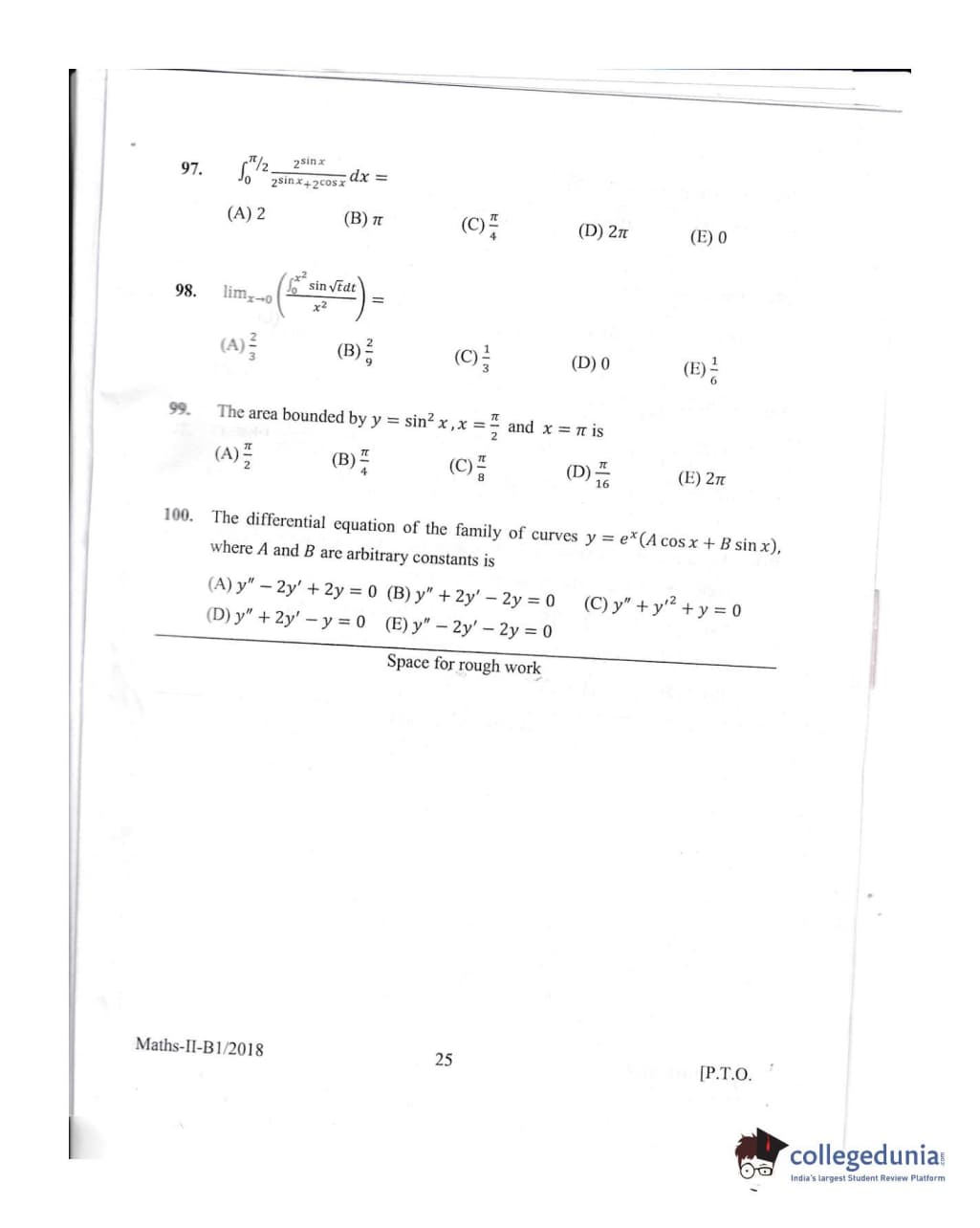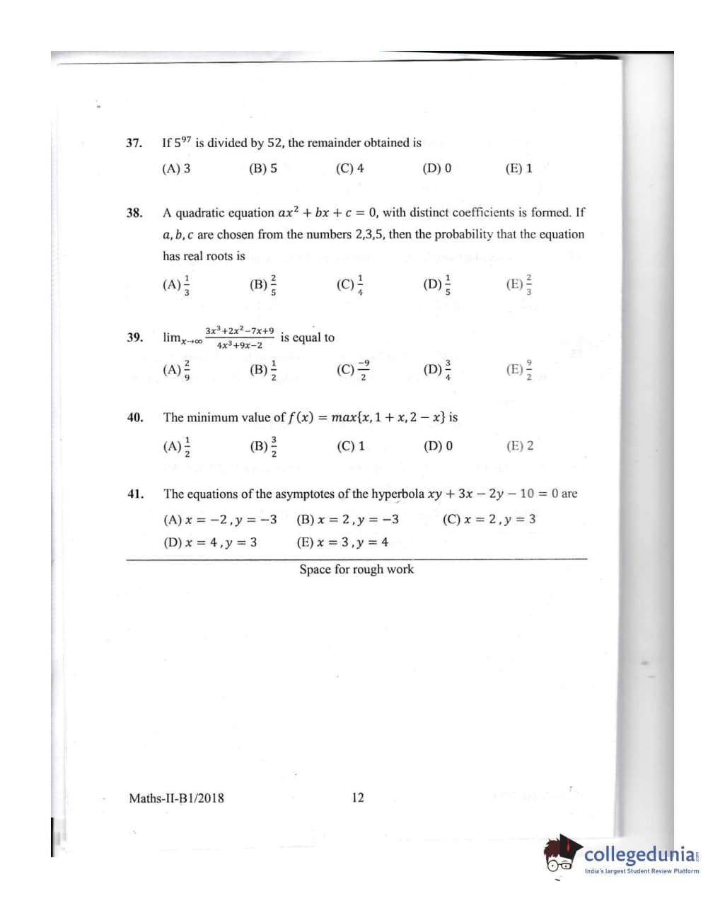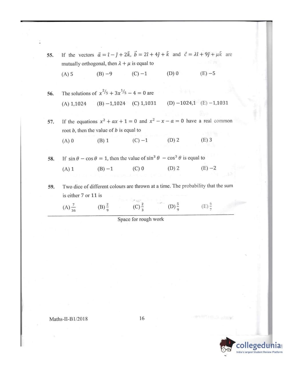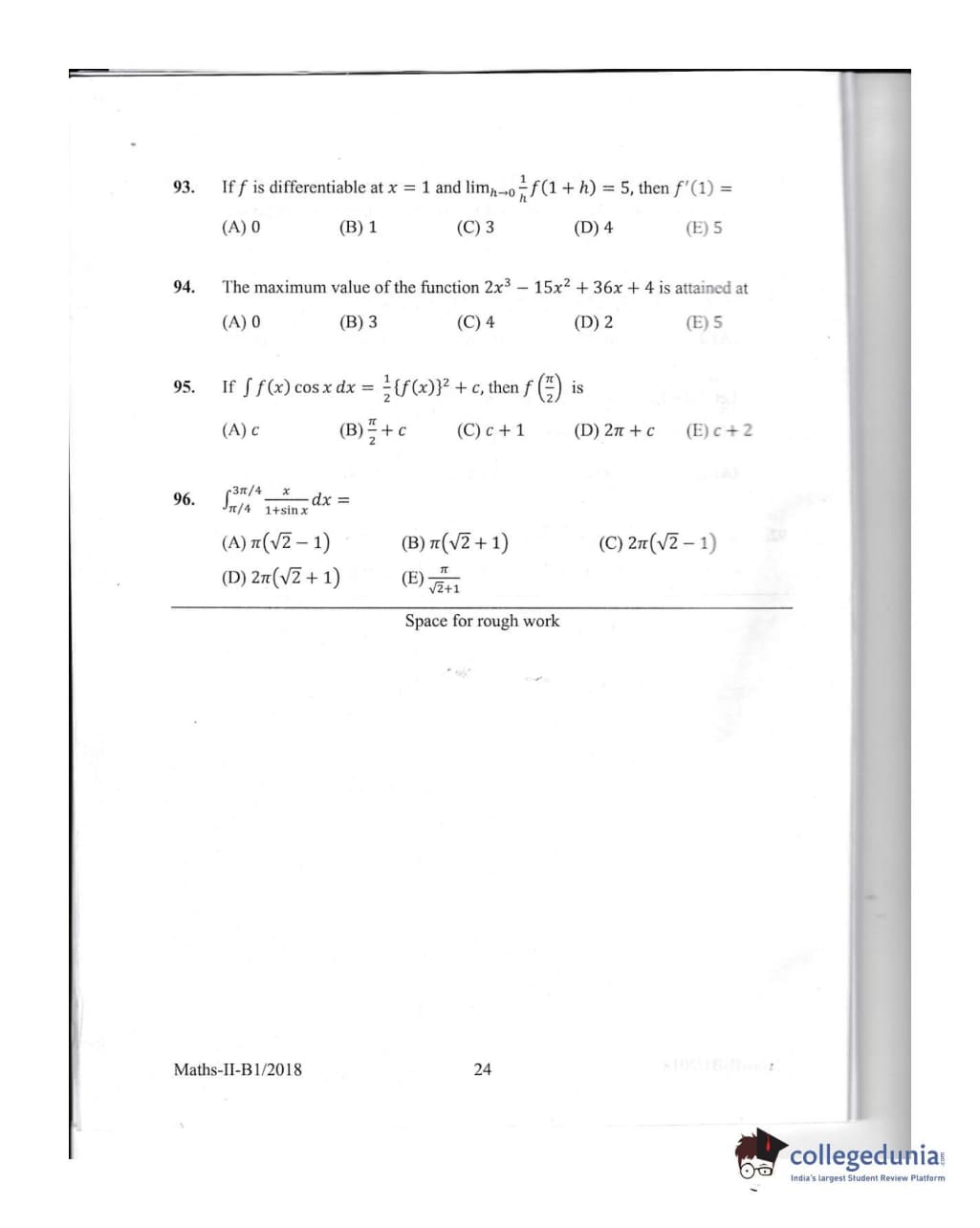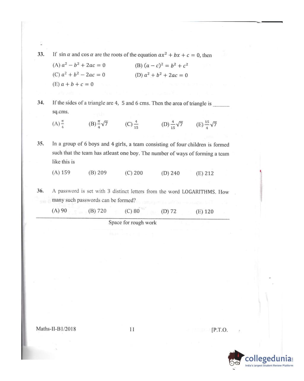 KEAM 2018 Mathematics Question paper with answer key pdf conducted on April 24, 2018 is available for download. The exam was successfully organized by Commissioner of Entrance Examinations Kerala. The question paper comprised a total of 120 questions.