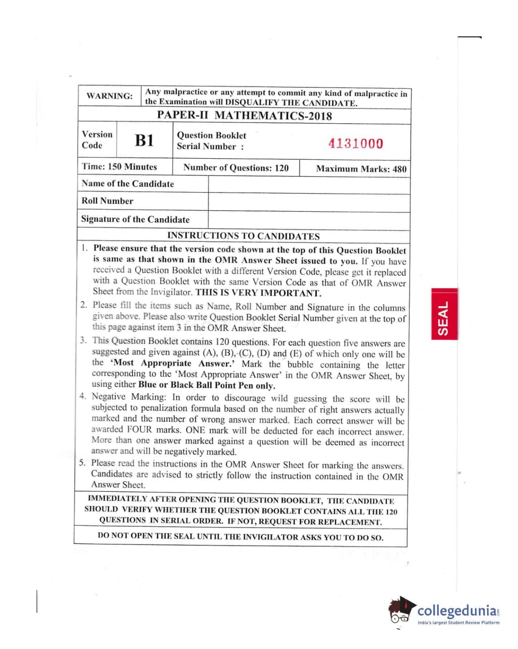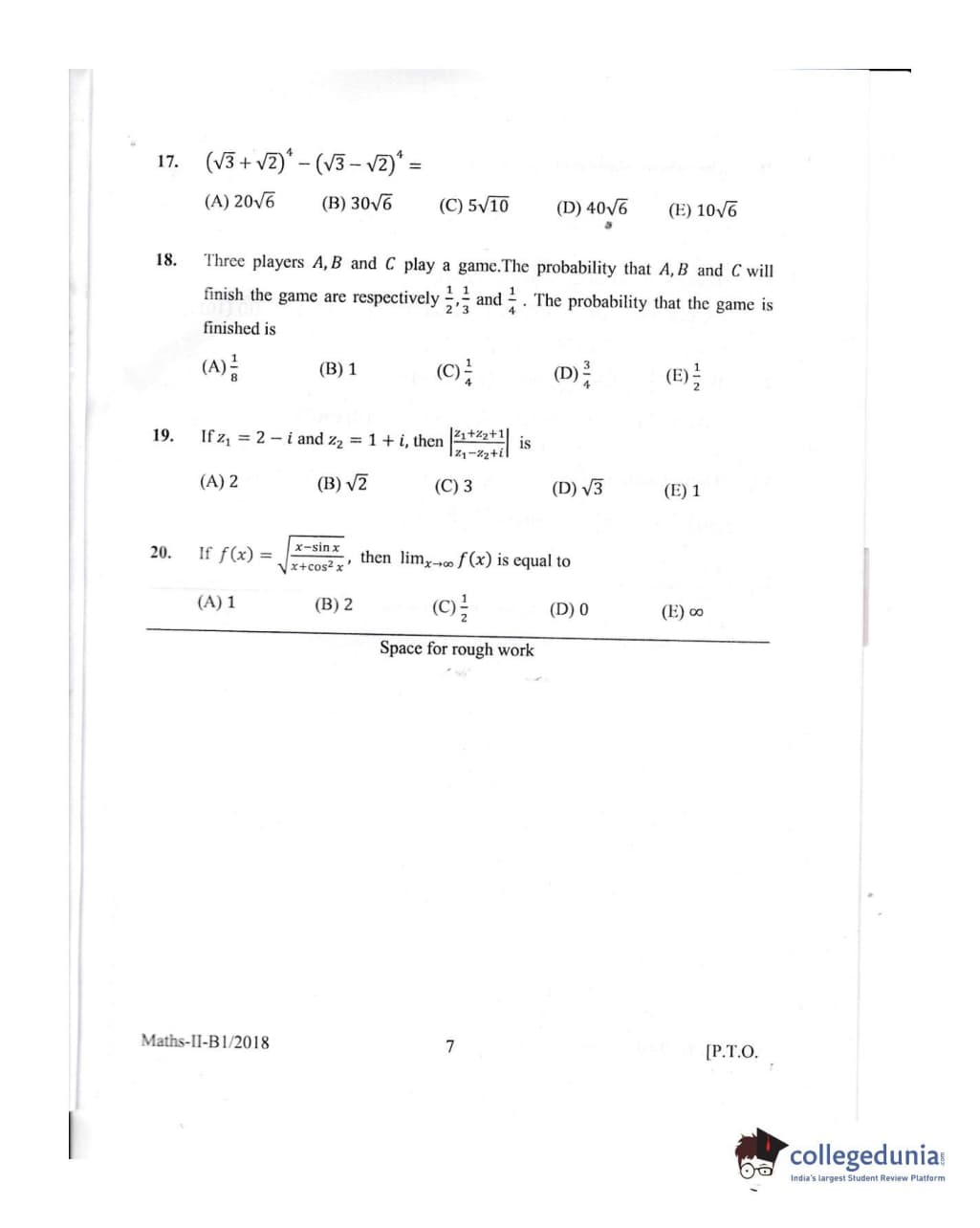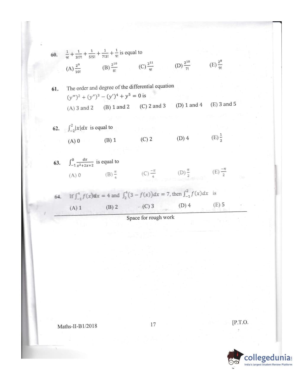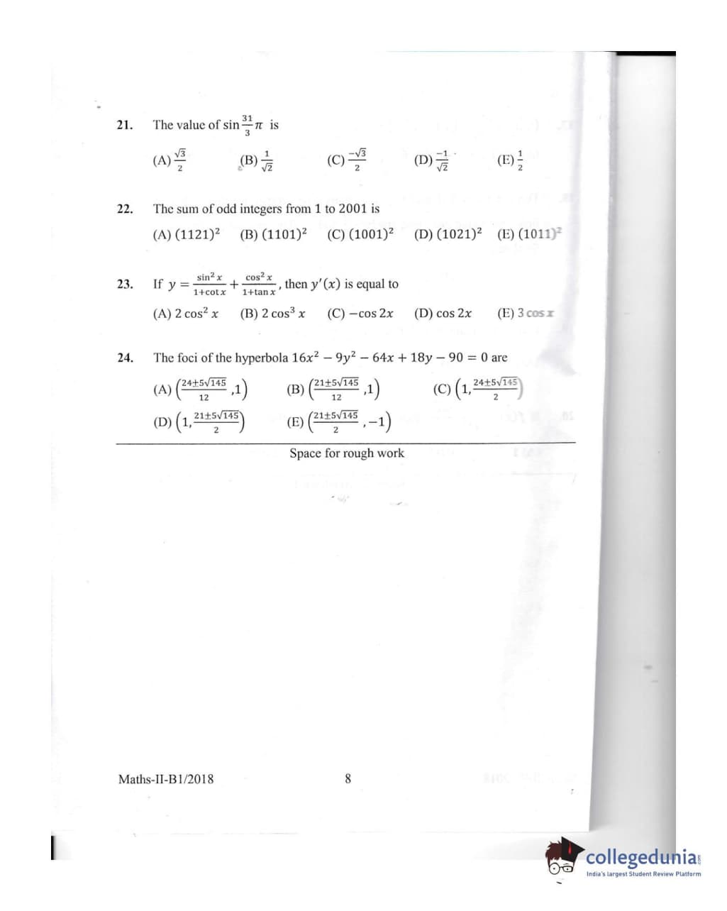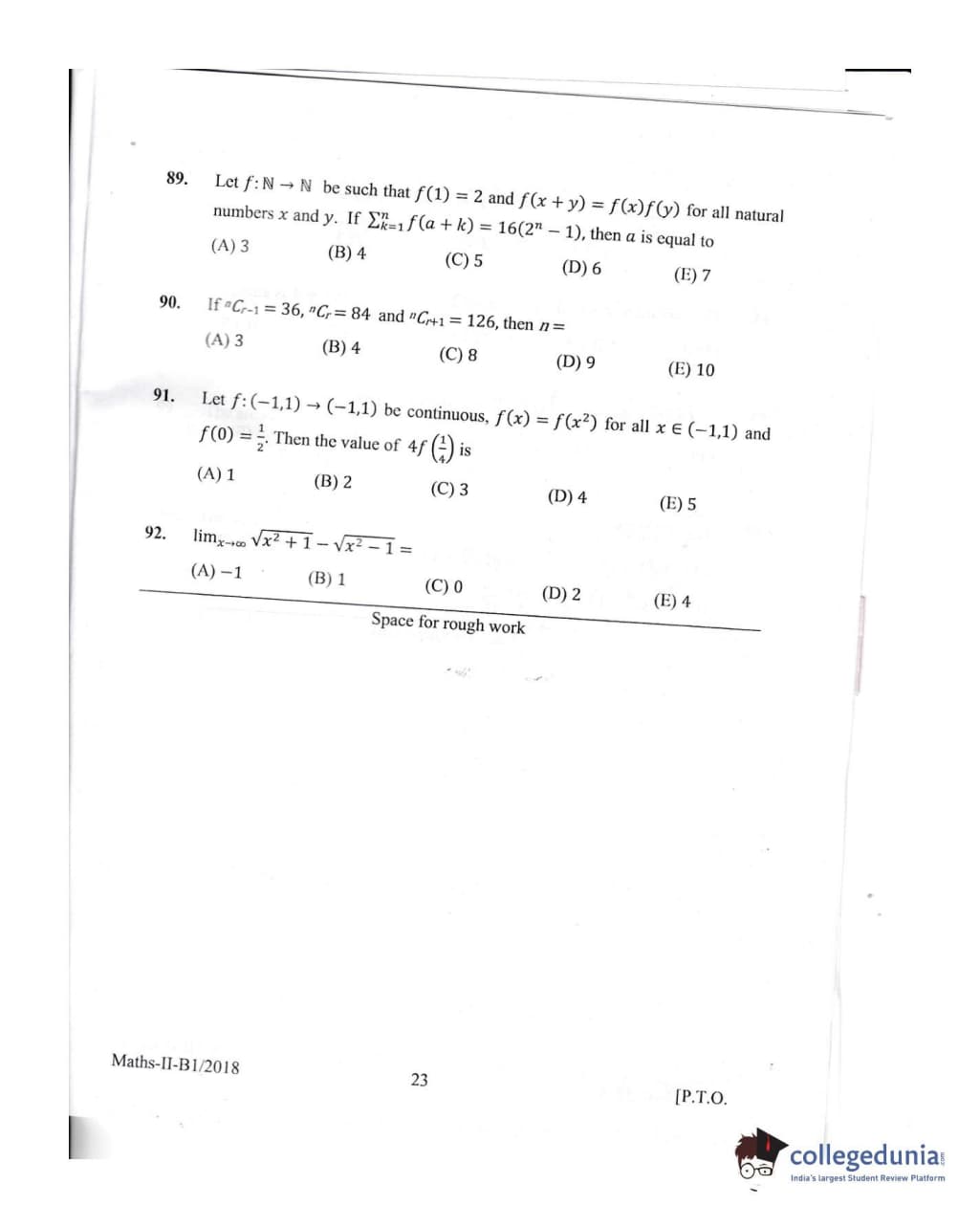 KEAM 2018 Mathematics Question paper with answer key pdf conducted on April 24, 2018 is available for download. The exam was successfully organized by Commissioner of Entrance Examinations Kerala. The question paper comprised a total of 120 questions.