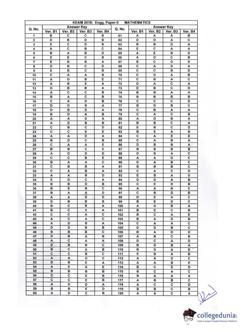| KEAM 2018 Mathematics Question Paper PDF | KEAM 2018 Mathematics Answer Key PDF |