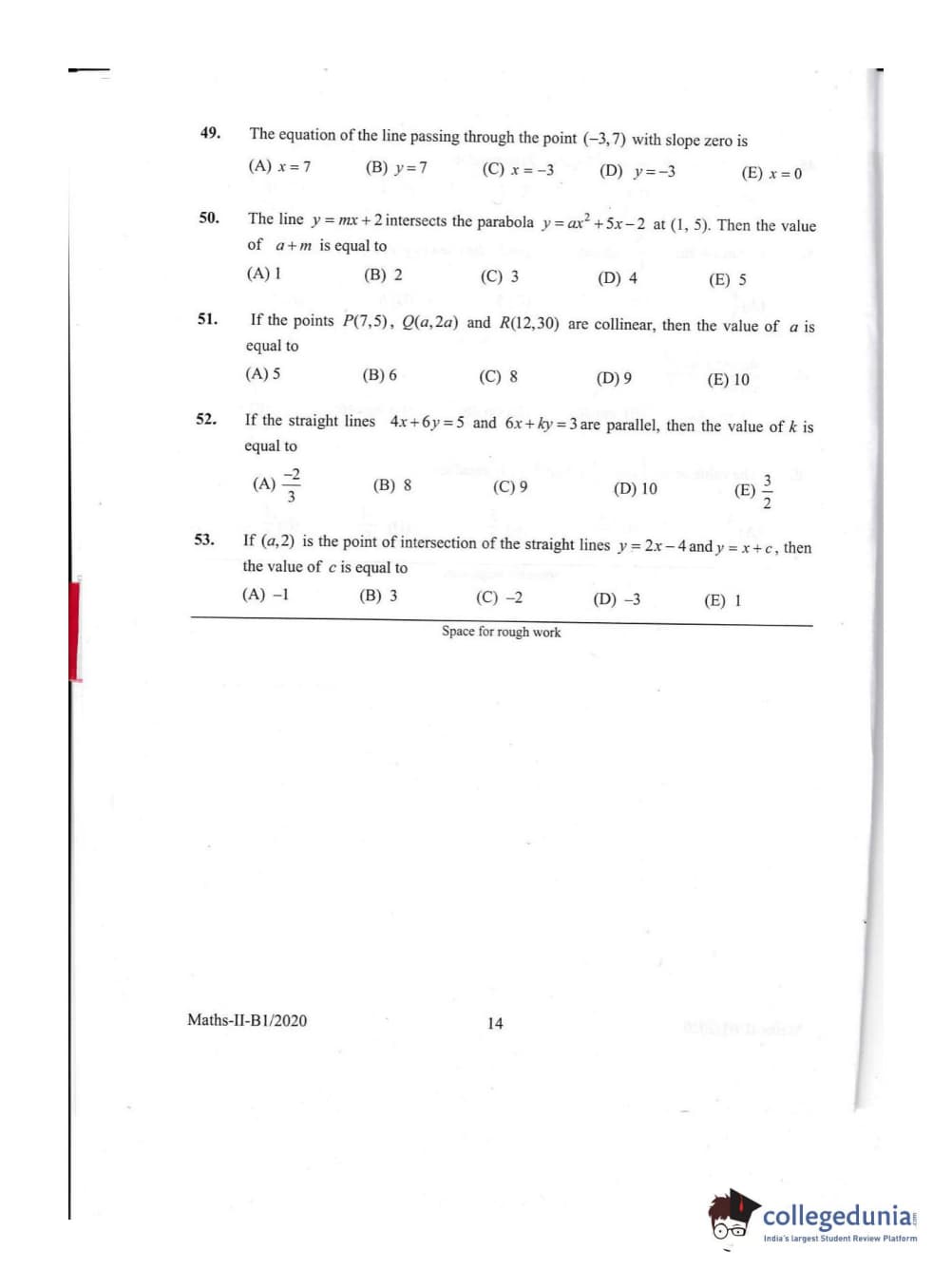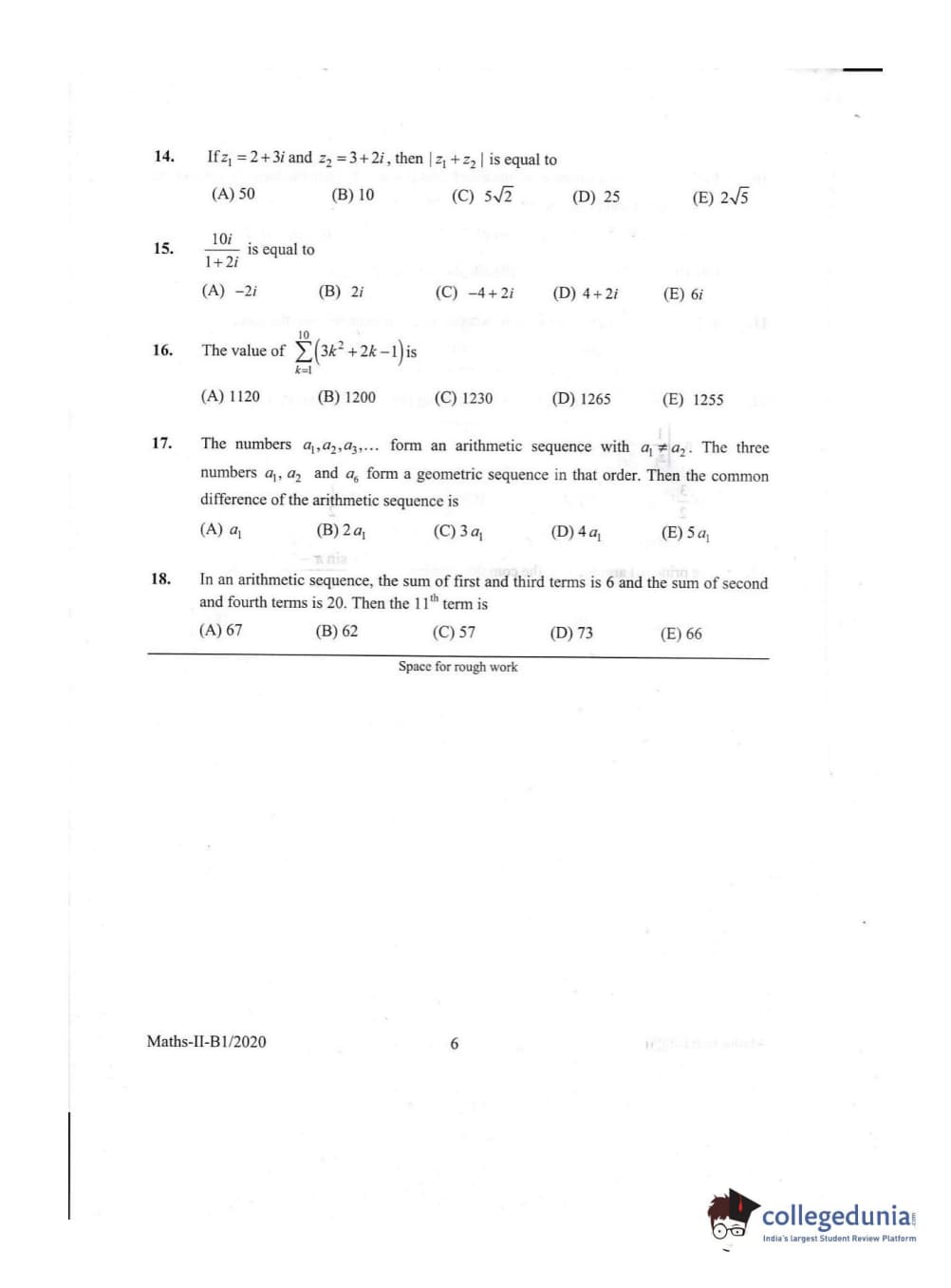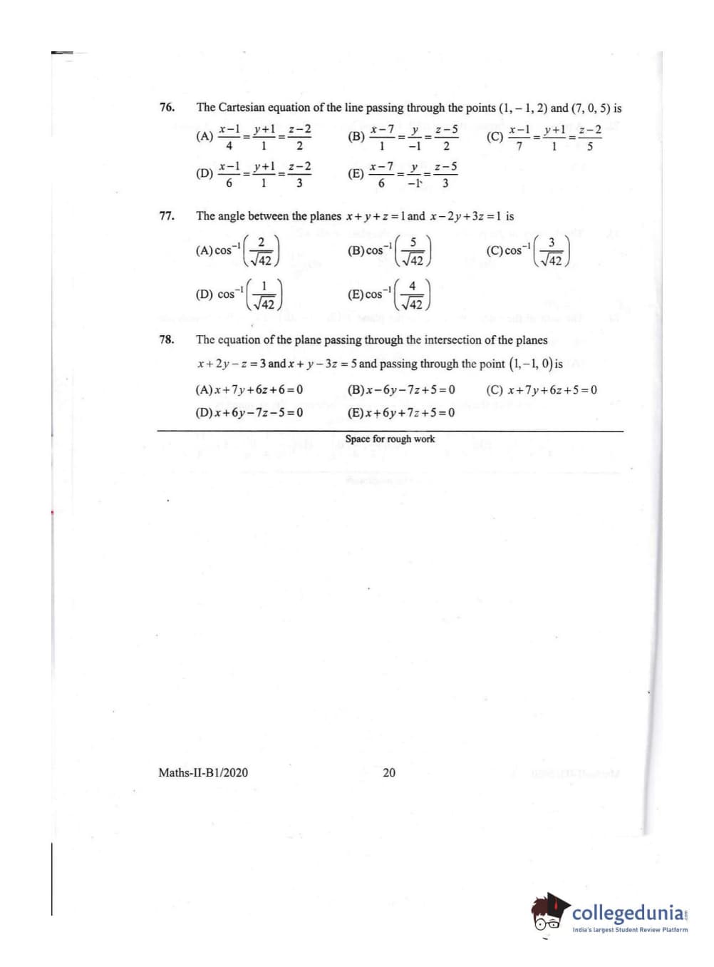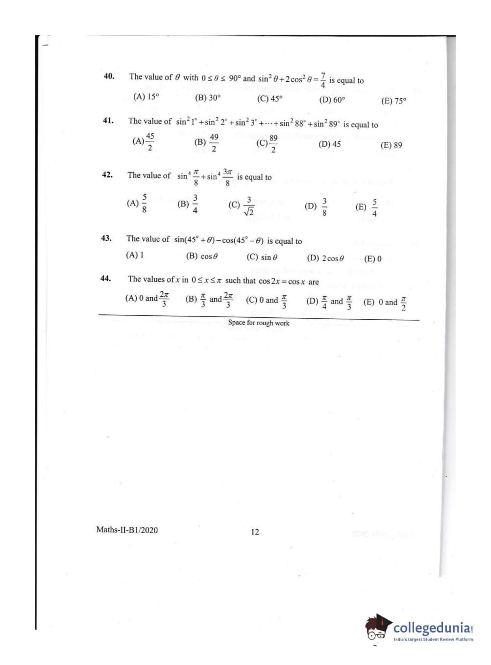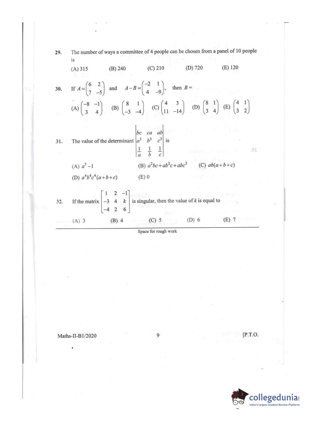 KEAM 2020 Mathematics Question Paper with Answer Key PDFs Afternoon Session