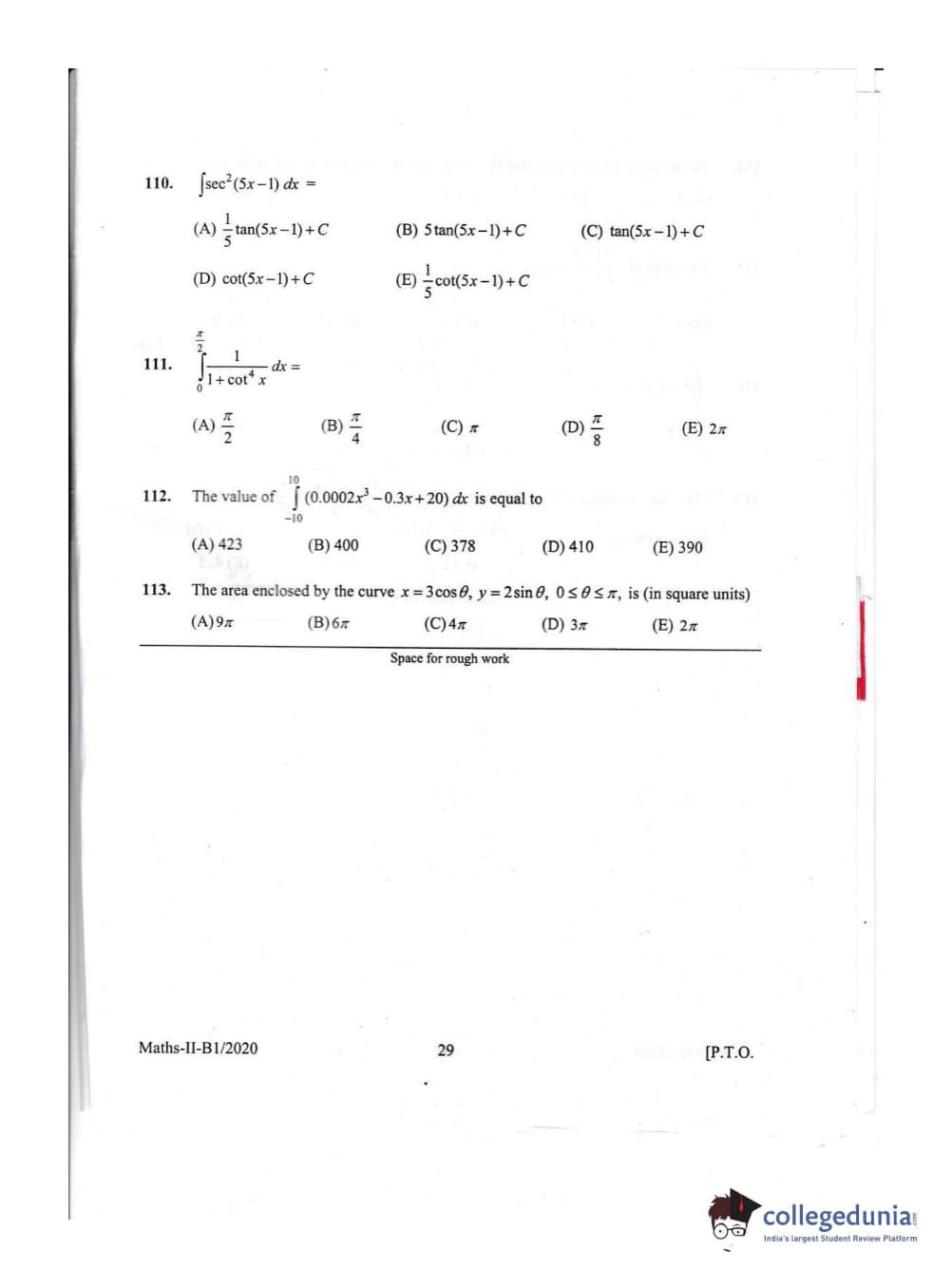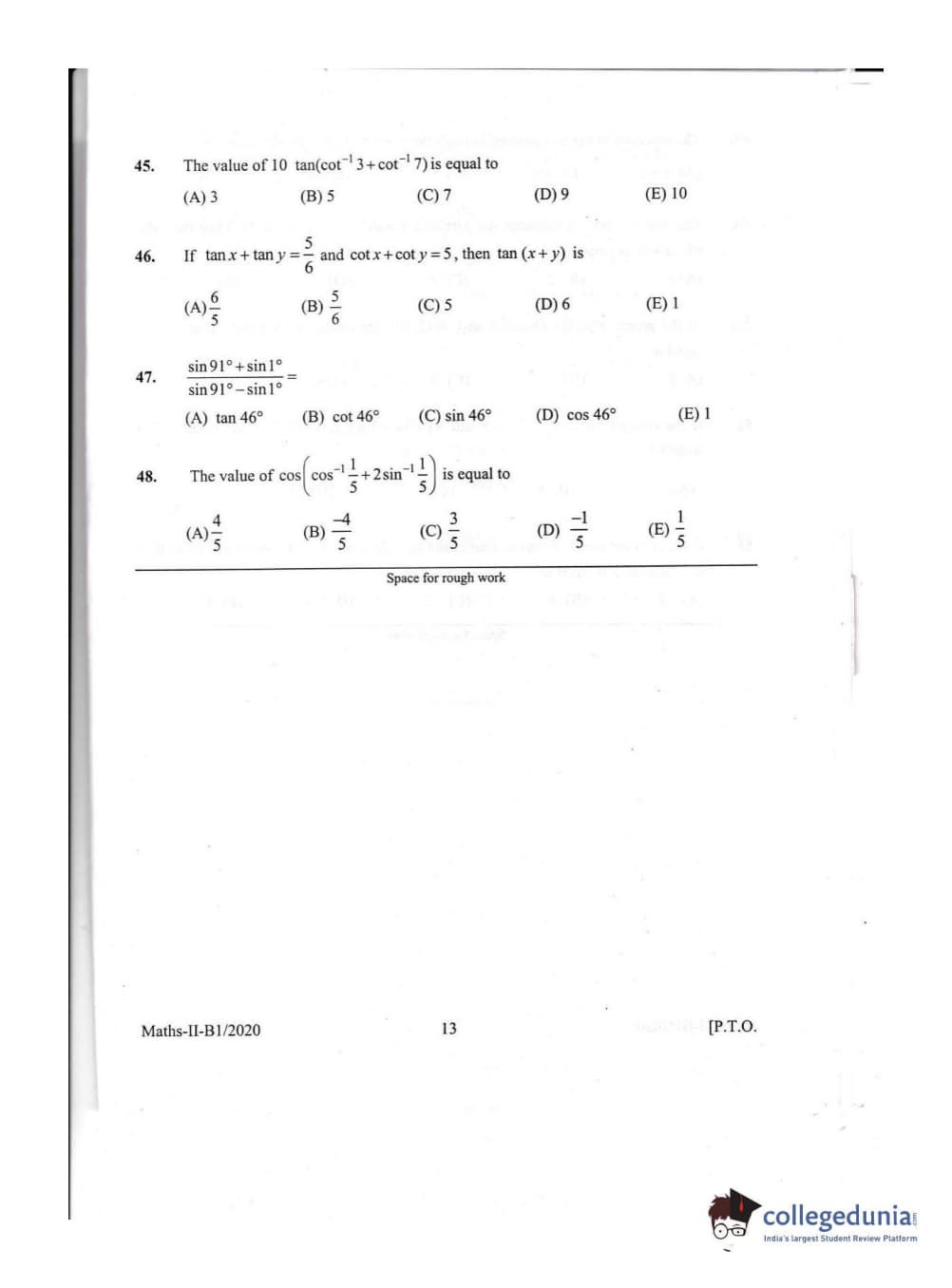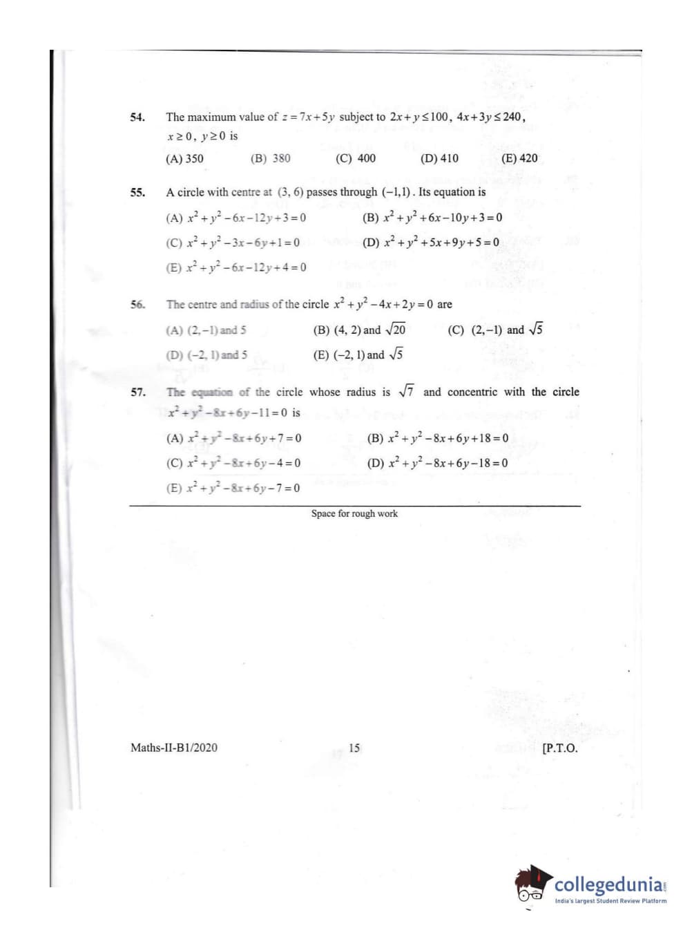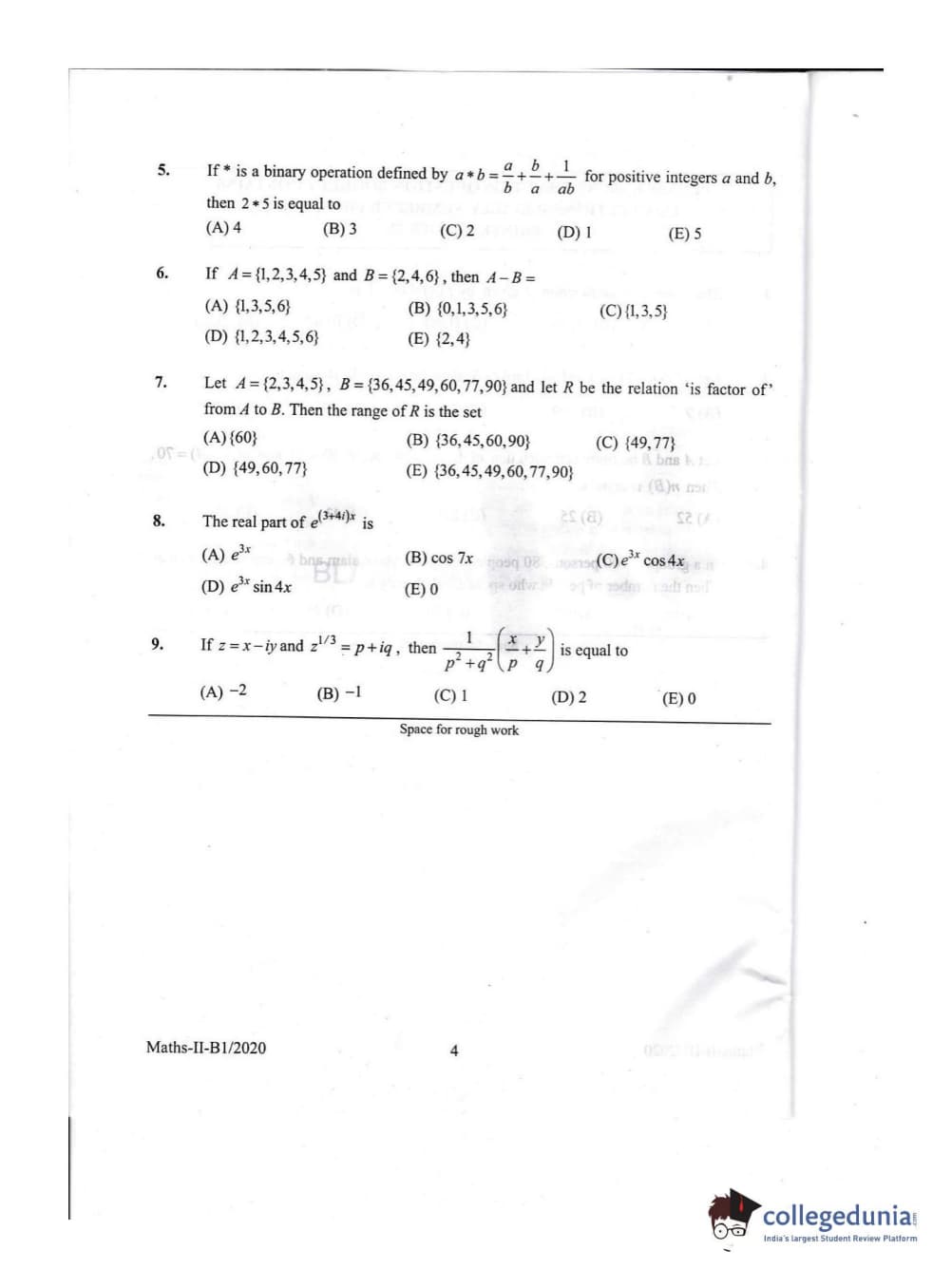 KEAM 2020 Mathematics Question Paper with Answer Key PDFs Afternoon Session