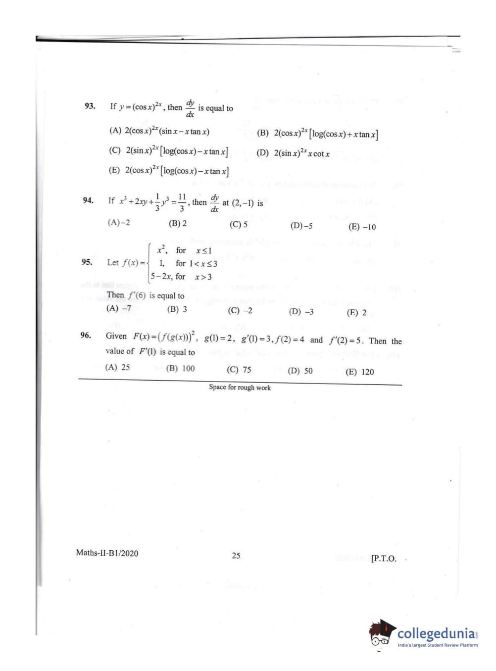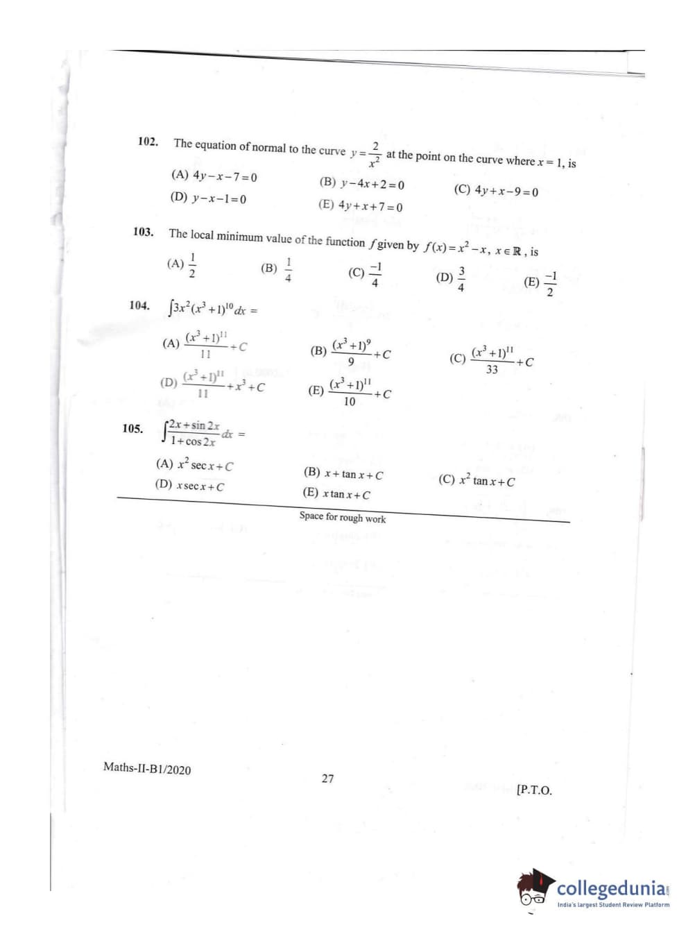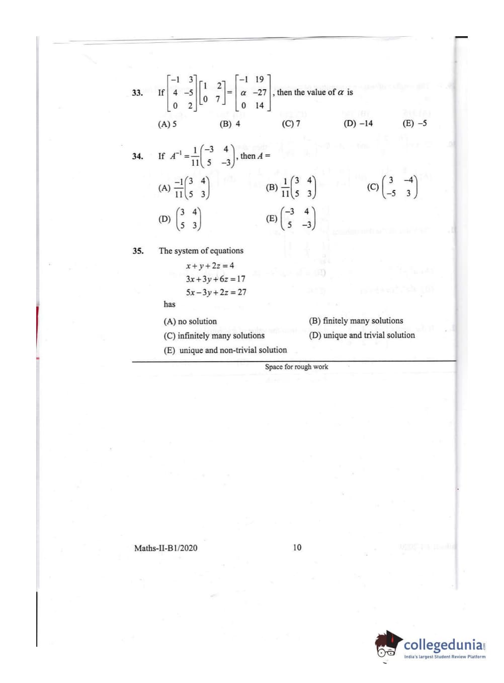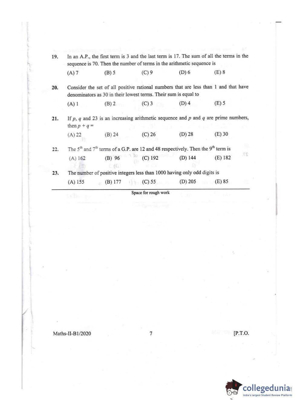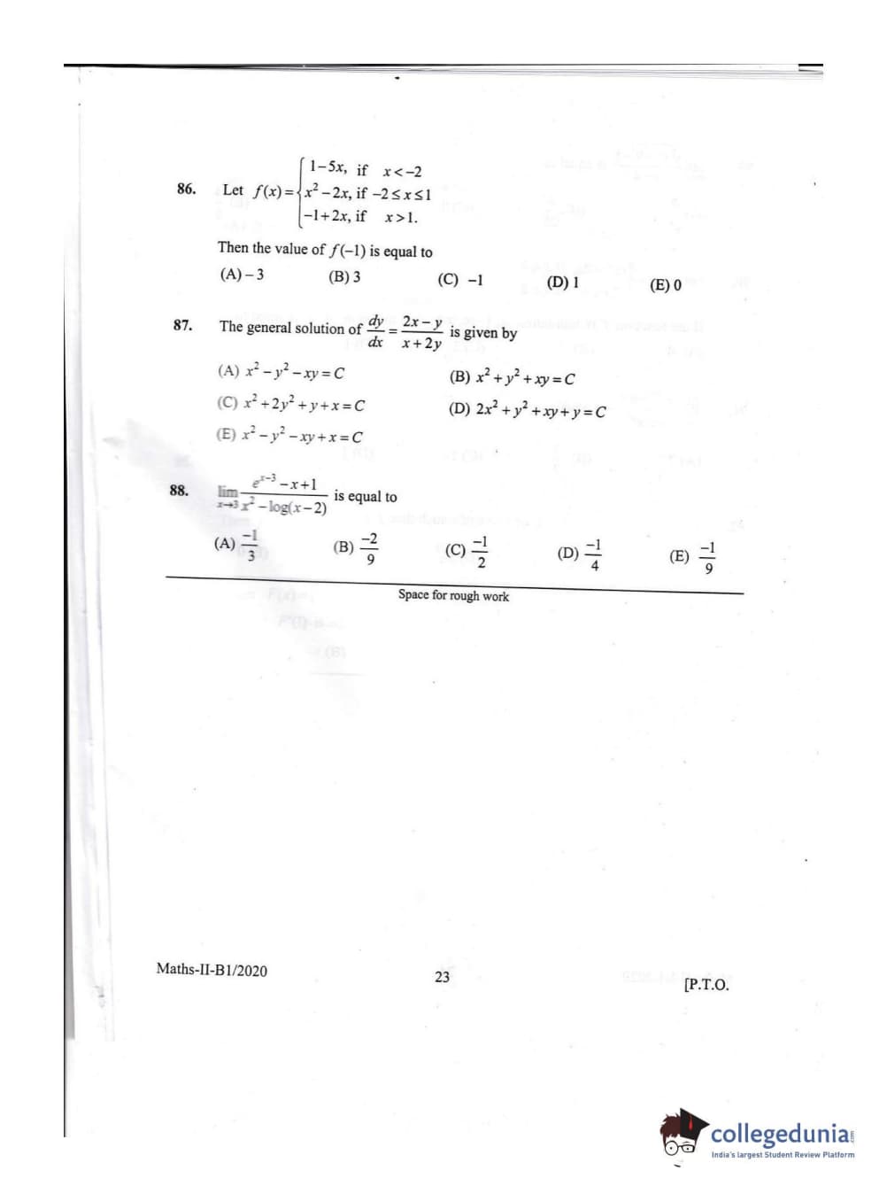 KEAM 2020 Mathematics Question Paper with Answer Key PDFs Afternoon Session