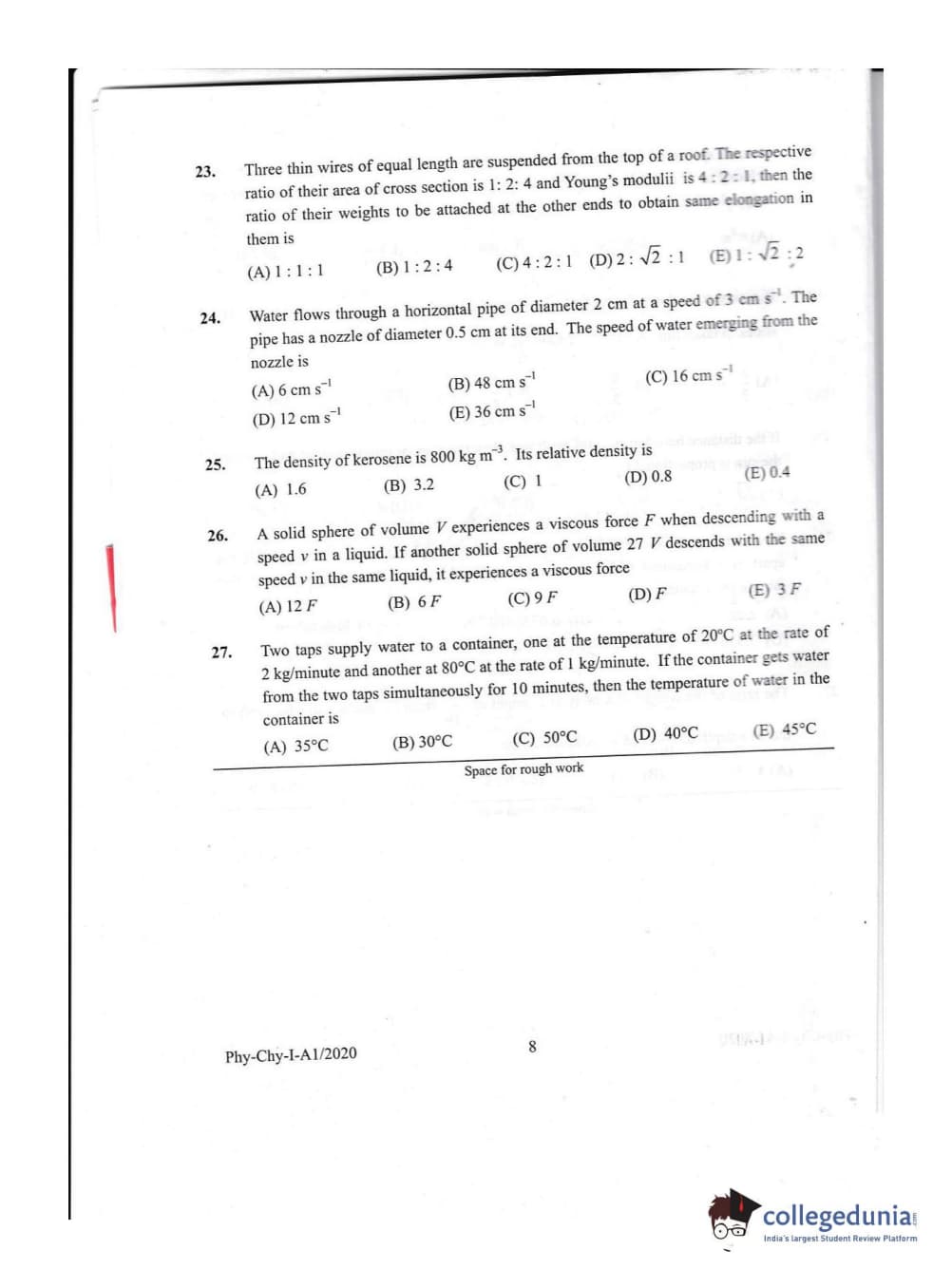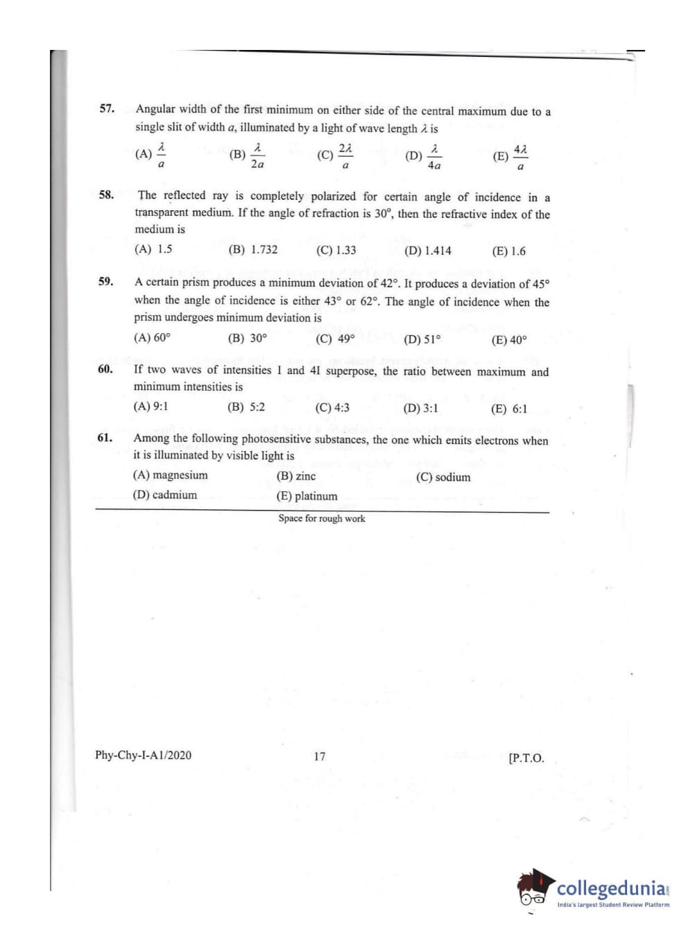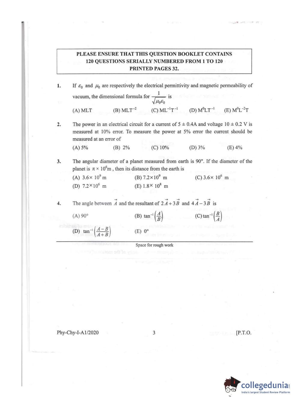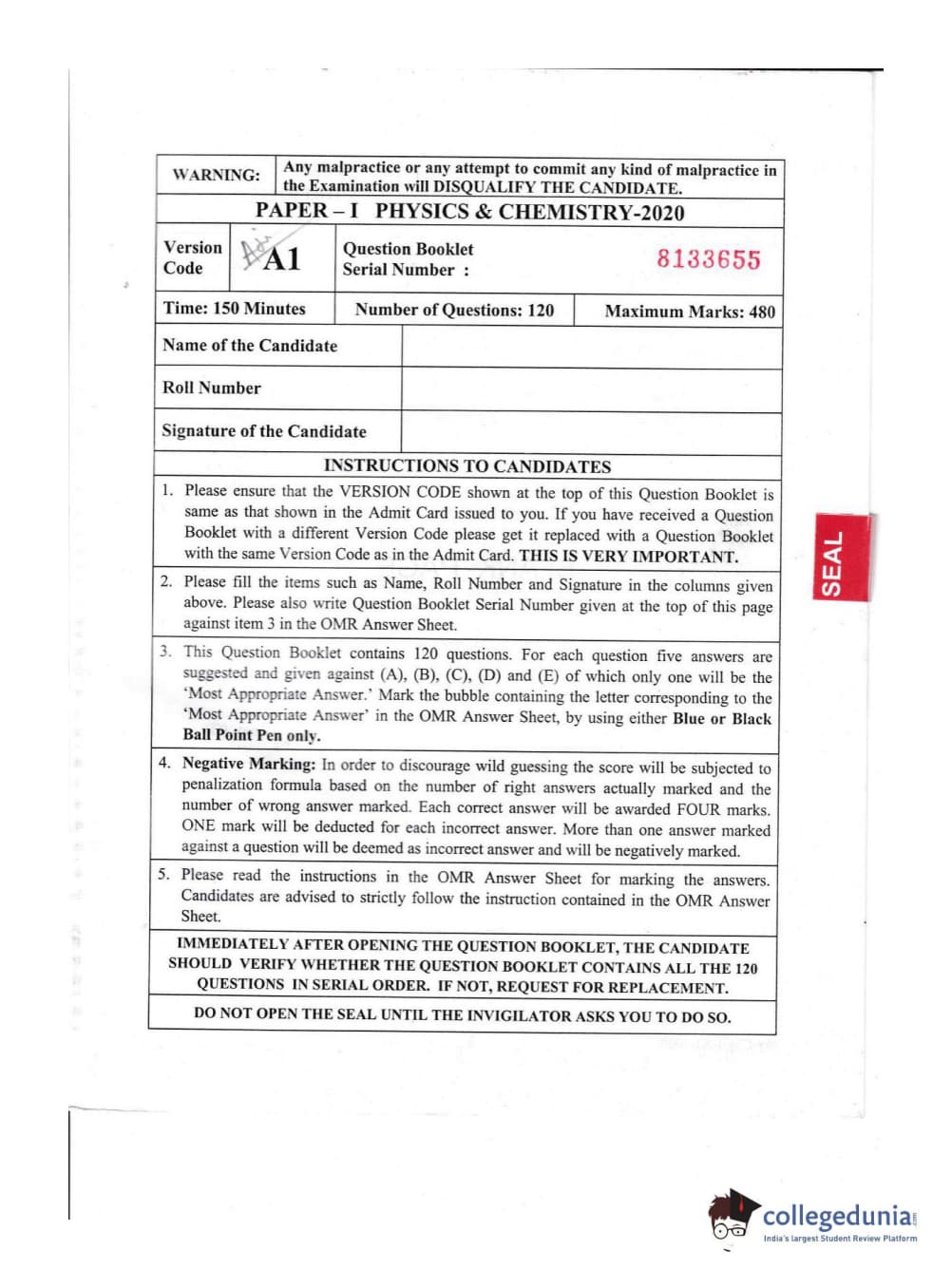 KEAM 2020 Physics & Chemistry Question paper with answer key pdf conducted on July 16, 2020 is available for download. The exam was successfully organized by Commissioner of Entrance Examinations Kerala. In terms of difficulty level, KEAM was of Moderate level. The question paper comprised a total of 120 questions.