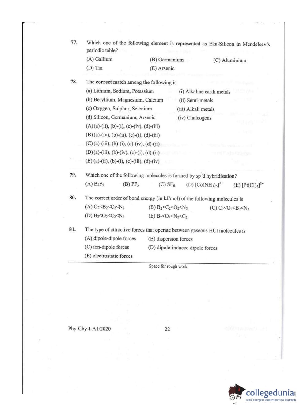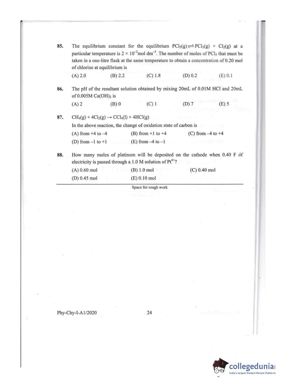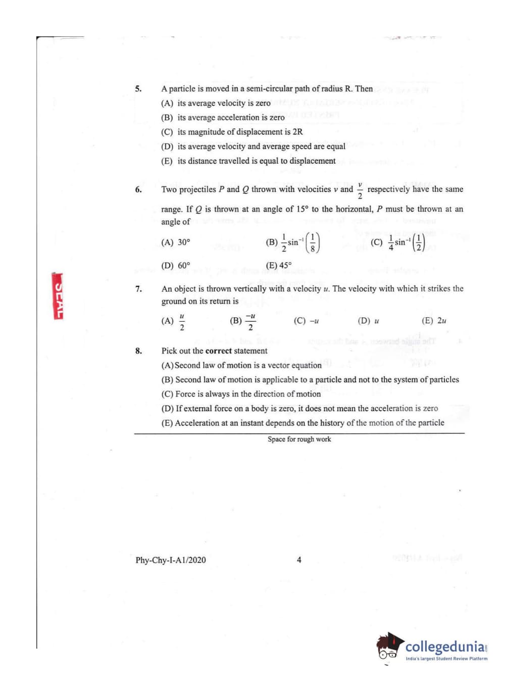 KEAM 2020 Physics & Chemistry Question Paper with Answer Key PDFs