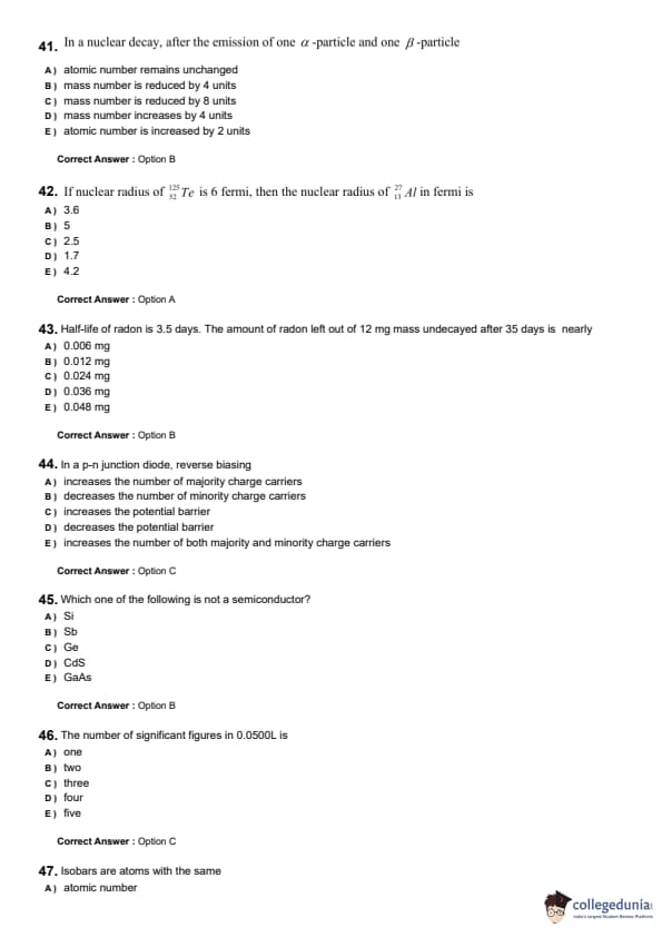 KEAM 2024 Question Paper (June 10) is available for download here. Office of The Commissioner for Entrance Examinations (CEE Kerala) conducted KEAM Pharmacy exam 2024 in CBT mode on June 10 in afternoon shift from 2 PM to 5 PM. KEAM Pharmacy 2024 Question Paper consists total of 75 questions carrying 4 mark each with negative marking of 1 for each incorrect answer. KEAM 2024 Question Paper includes Physics with 45 questions and Chemistry with 30 questions to be attempted in total of 90 minutes.