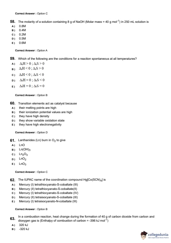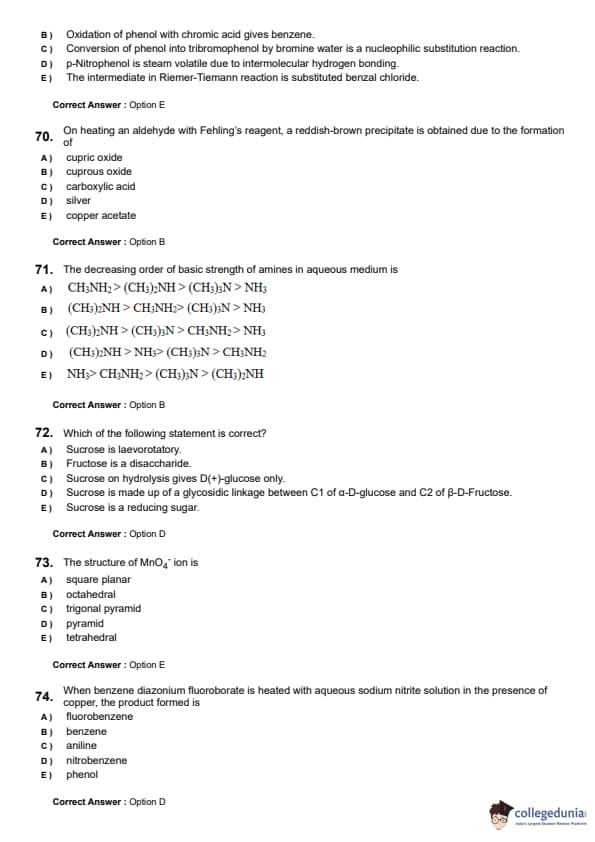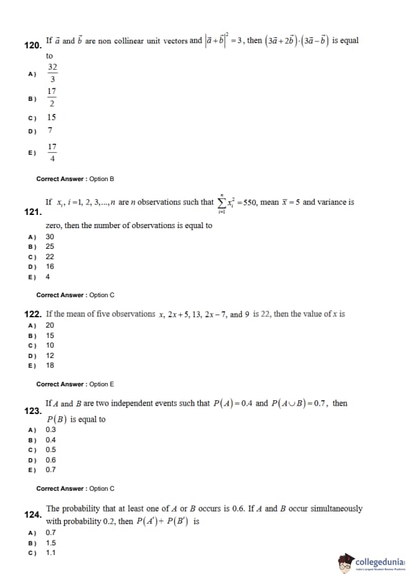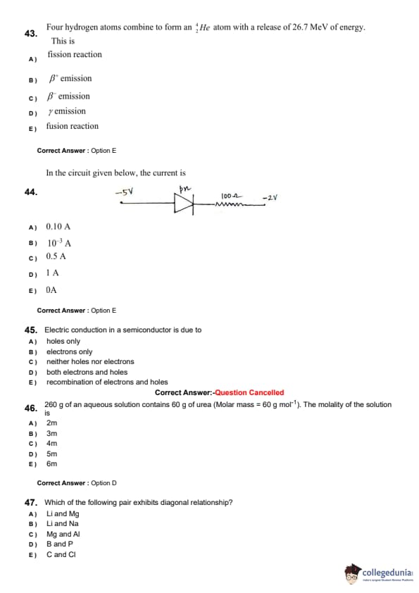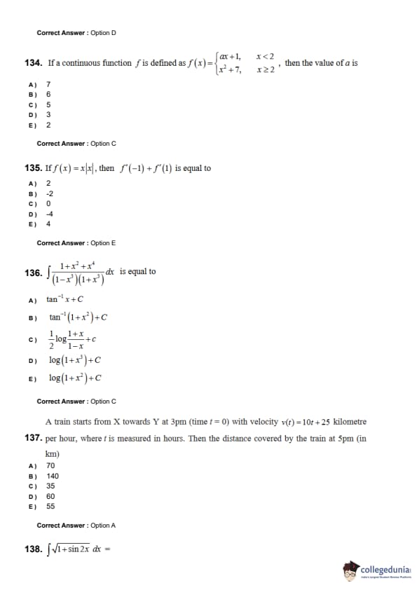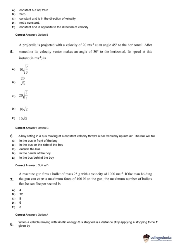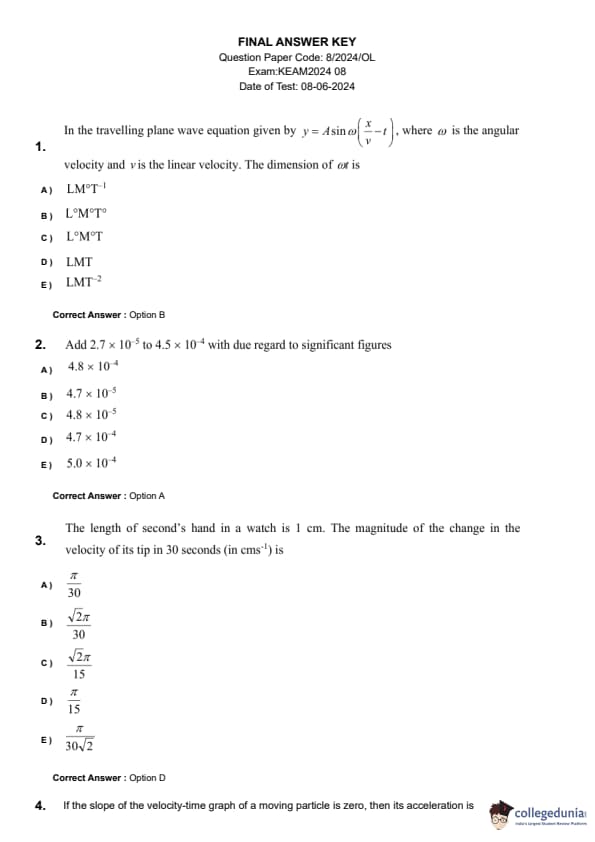 | KEAM 2024 (June 8) Question Paper with Answer Key | Check Solution |