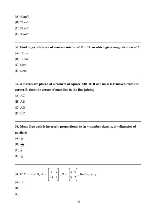 Mean free path is inversely proportional to (n = number density, d = diameter of particle)
