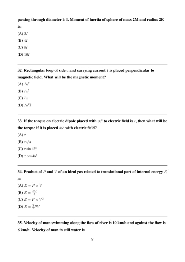 Rectangular loop of side \(a\) and carrying current \(I\) is placed perpendicular to magnetic field. What will be the magnetic moment?