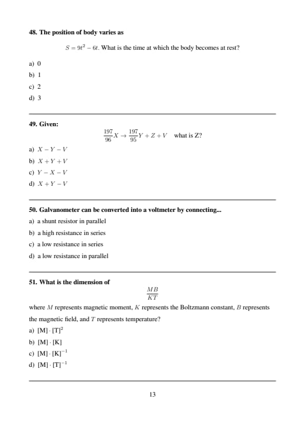 The position of body varies as \[ S = 9t^2 - 6t. What is the time at which the body becomes at rest? \]