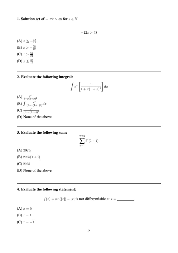 \( -12x > 38 for x \in \mathbb{N} \)\[ -12x > 38 \]