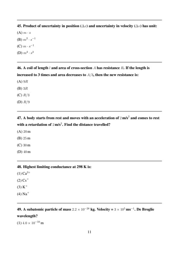 Product of uncertainty in position (\(\Delta x\)) and uncertainty in velocity (\(\Delta v\)) has unit: