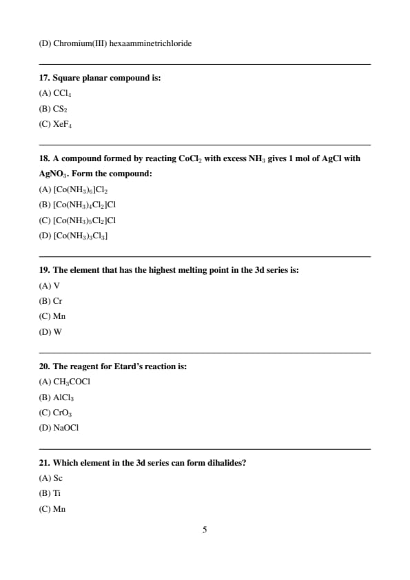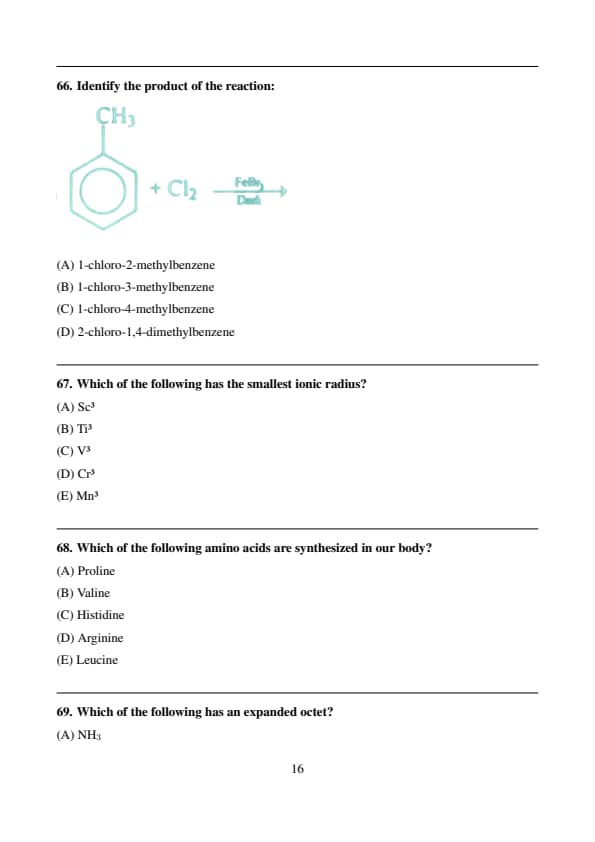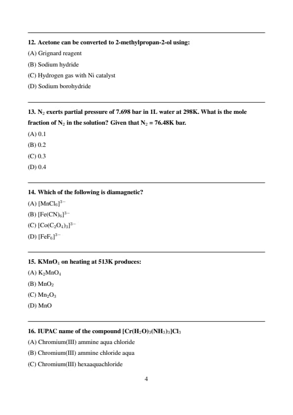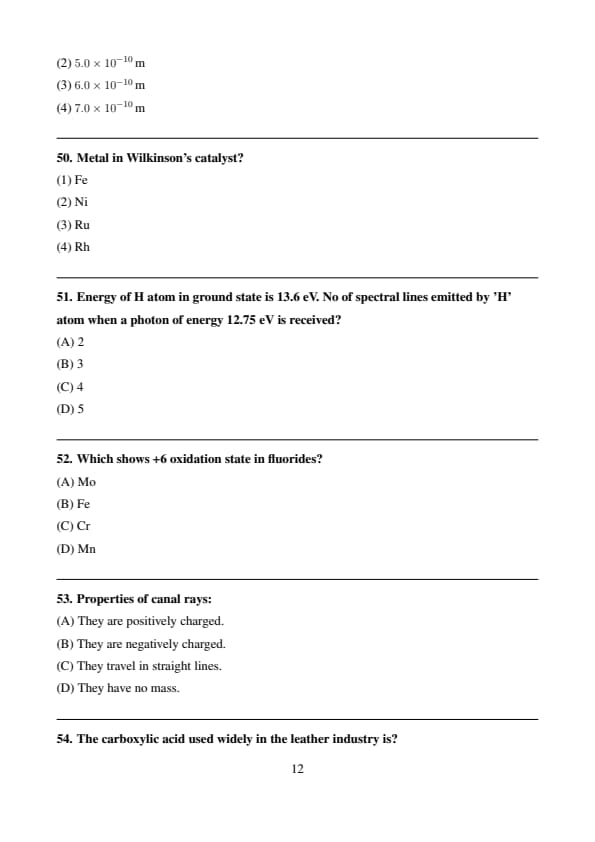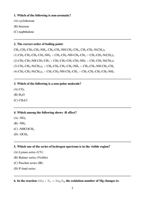 | Chemistry | Easy to Moderate |