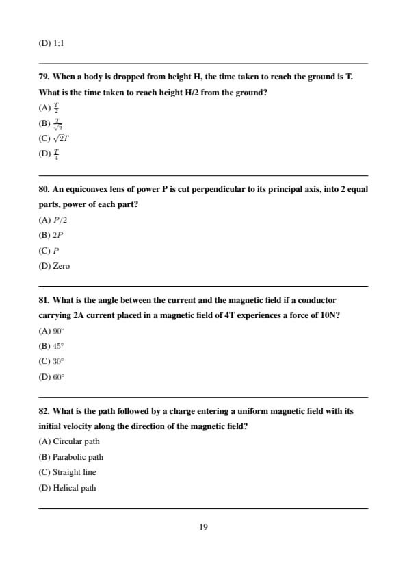 When a body is dropped from height H, the time taken to reach the ground is T. What is the time taken to reach height H/2 from the ground?