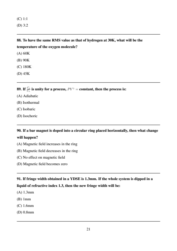 If \( \frac{C_p}{C_v} \) is unity for a process, \( PV^{\gamma} = constant \), then the process is:
