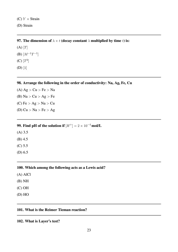 The dimension of \( \lambda \times t \) (decay constant \(\lambda\) multiplied by time \(t\)) is: