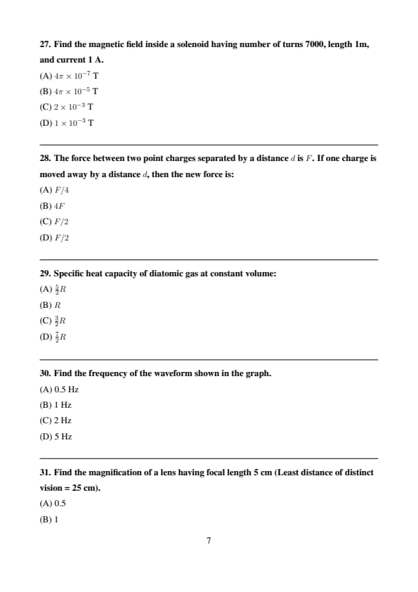 Find the magnetic field inside a solenoid having number of turns 7000, length 1m, and current 1 A.