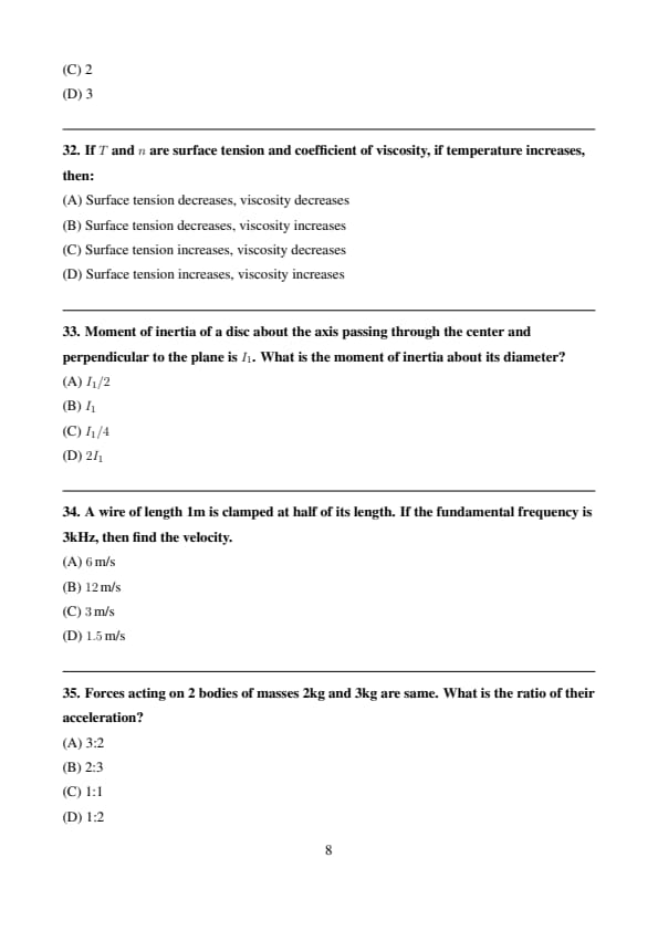 Moment of inertia of a disc about the axis passing through the center and perpendicular to the plane is \(I_1\). What is the moment of inertia about its diameter?