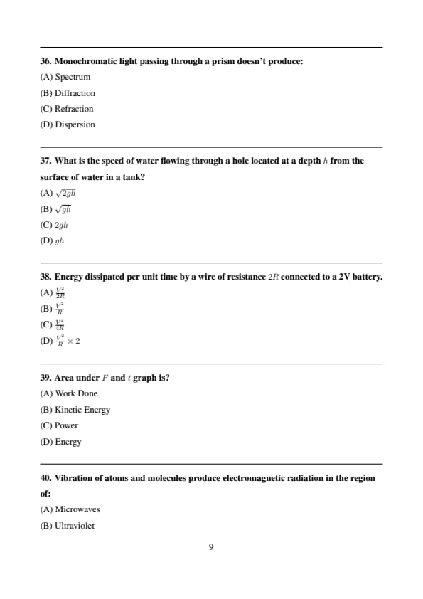 | Physics | Moderate to Difficult |
