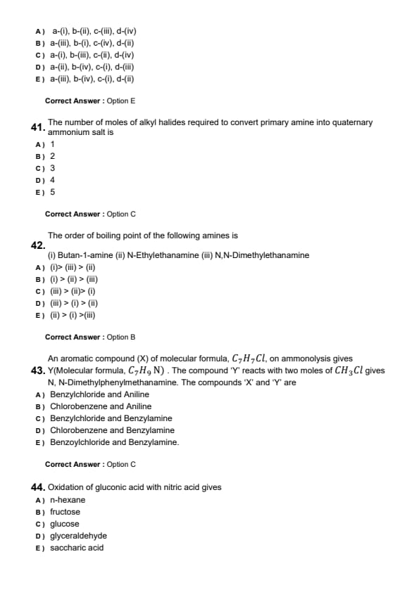 The order of boiling point of the following amines is