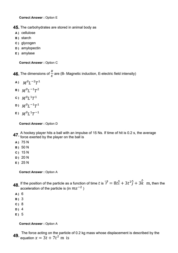 The dimensions of \( \frac{B}{E} \) are (B: Magnetic induction, E: Electric field intensity)