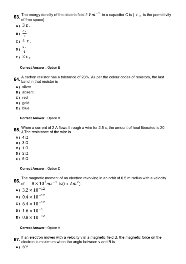 The energy density of the electric field \( 2 \, V/m \) in a capacitor \( C \) is \( \varepsilon_0 \) is the permittivity of free space