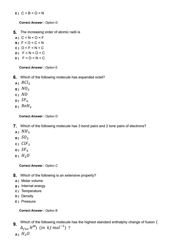 The increasing order of atomic radii is