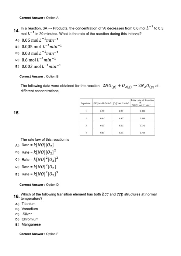 | Experiment | [NO] (mol L-1) | [O2] (mol L-1) | Initial Rate (mol L-1 min-1) |