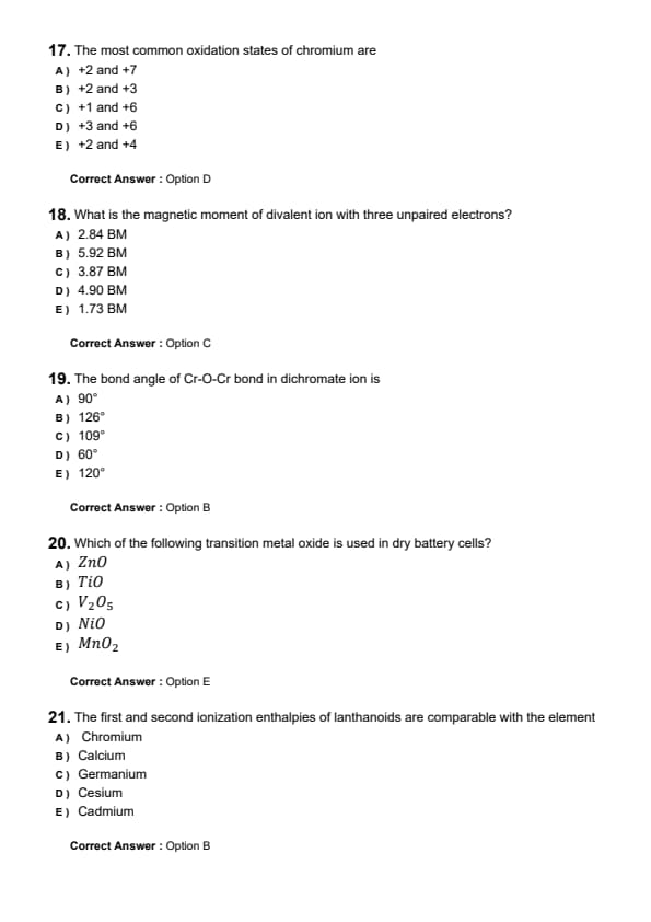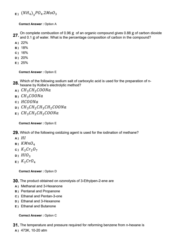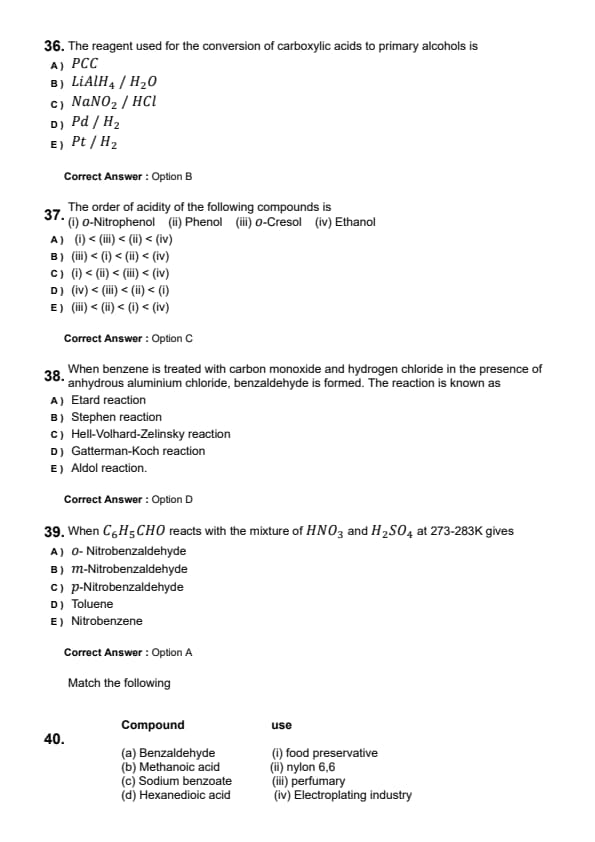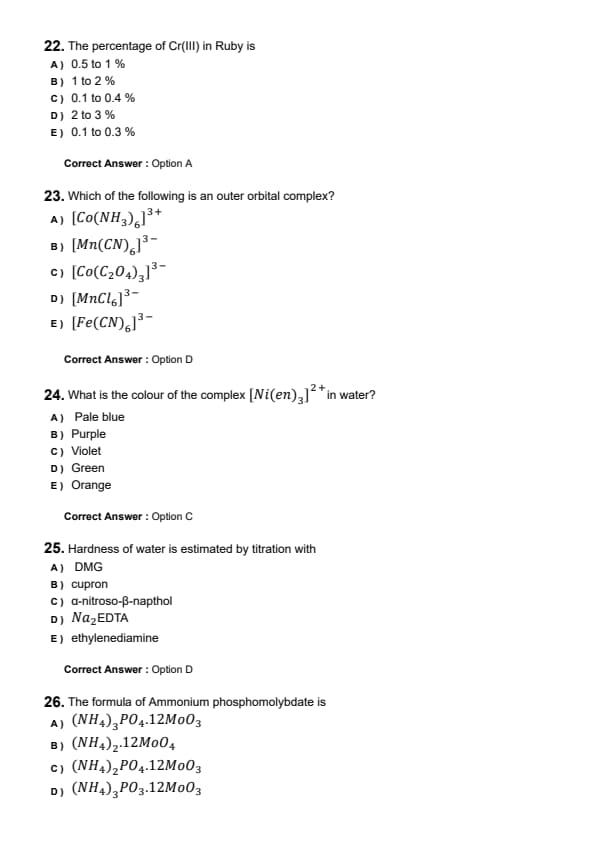 | Chemistry | Easy to Moderate |