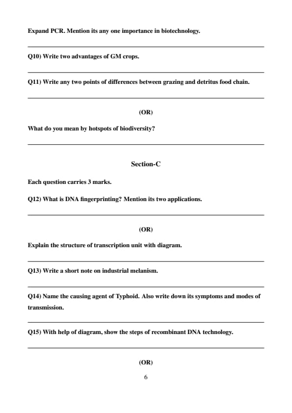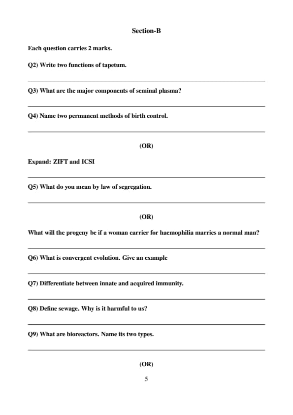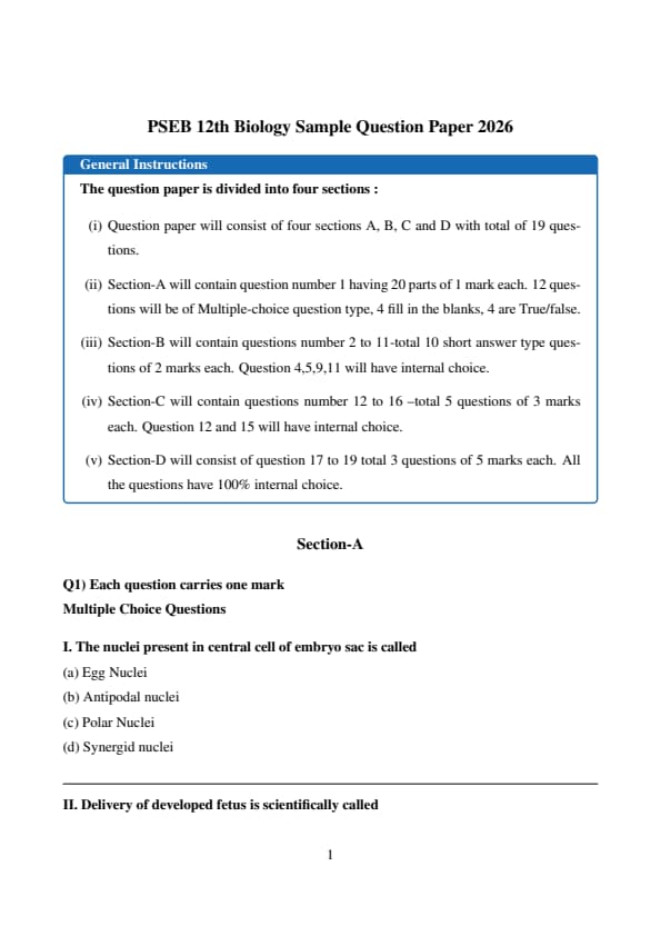 | PSEB Class 12 Biology Sample Question Paper 2026 Question Paper with Solutions PDF | Download PDF | Check Solutions |