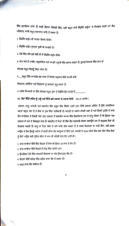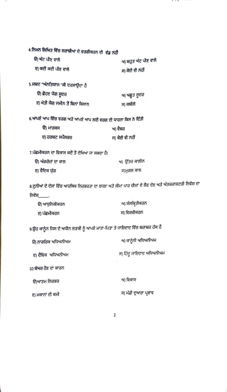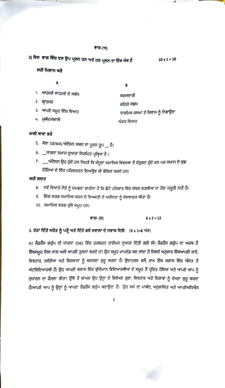 Step 1: ਇਸ ਤਹਾ ਵਿੱਚ, ਦੱਸ ਉਪ ਪ੍ਰਸ਼ਨ ਦਿੱਤੇ ਗਏ ਹਨ ਜੋ ਅਲੱਗ ਅਲੱਗ ਸਮਾਜਿਕ, ਧਾਰਮਿਕ ਅਤੇ ਆਰਥਿਕ ਵਿਸ਼ਿਆਂ ਨਾਲ ਜੁੜੇ ਹੋਏ ਹਨ। ਅਸੀਂ ਹਰ ਉਪ ਪ੍ਰਸ਼ਨ ਦੇ ਸਹੀ ਉੱਤਰ ਨਾਲ ਜੋੜ ਕਰਾਂਗੇ। ਇਸ ਲਈ, ਹੇਠਾਂ ਦਿੱਤੇ ਗਏ ਉਪ ਪ੍ਰਸ਼ਨ ਅਤੇ ਉਨ੍ਹਾਂ ਦੇ ਉੱਤਰ ਜੋੜੇ ਜਾ ਰਹੇ ਹਨ: