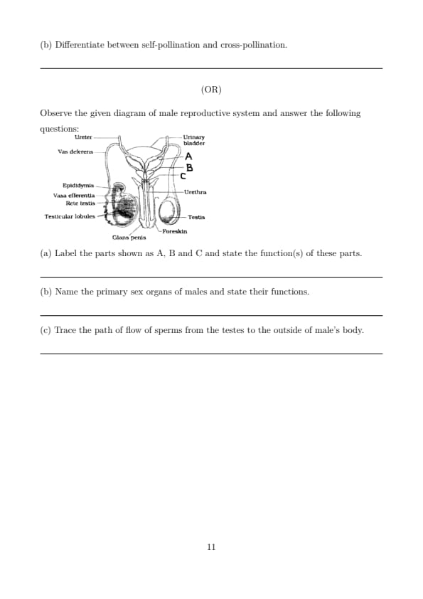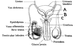 Observe the given diagram of male reproductive system and answer the following