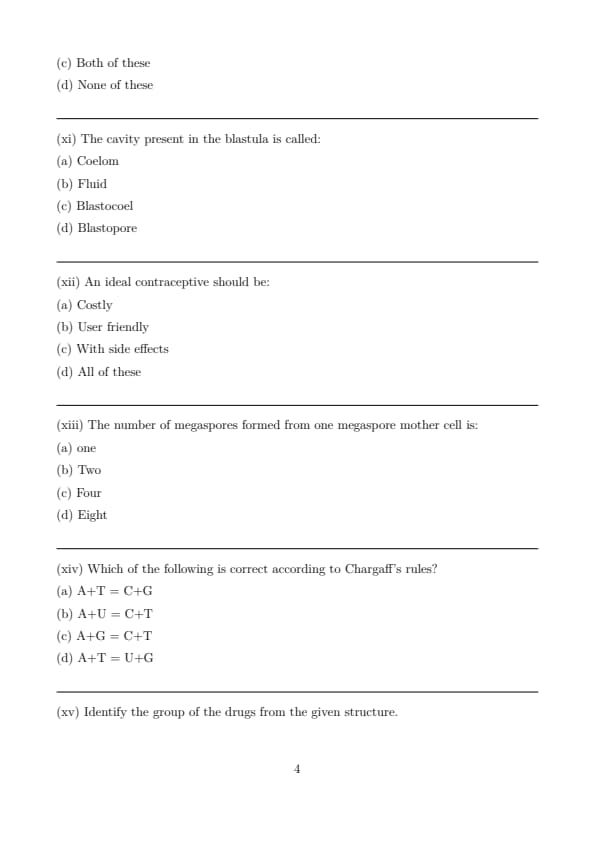 Step 3: Therefore, \(A+G = T+C\) (or \(C+T\)). This proves that the ratio of purines to pyrimidines is always \(1:1\). Quick Tip: \(A+T\) does NOT necessarily equal \(G+C\). The ratio of \((A+T)/(G+C)\) varies between different species.