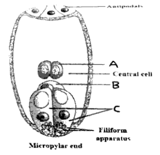 C: Egg cell (part of the egg apparatus at the micropylar end).