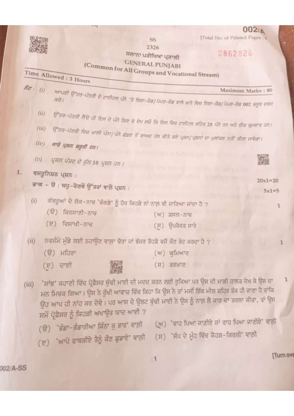 | Punjab Board Class 12 2026 General Punjabi Question Paper with Solution PDF | Download PDF | Check Solutions |