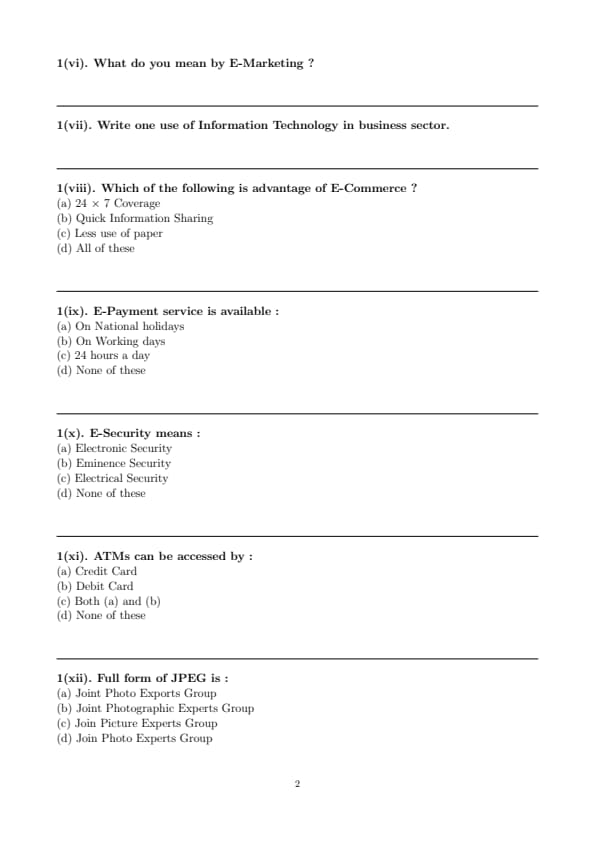 1. B2B (Business-to-Business) Commerce refers to electronic transactions between two businesses rather than between a business and a consumer.
