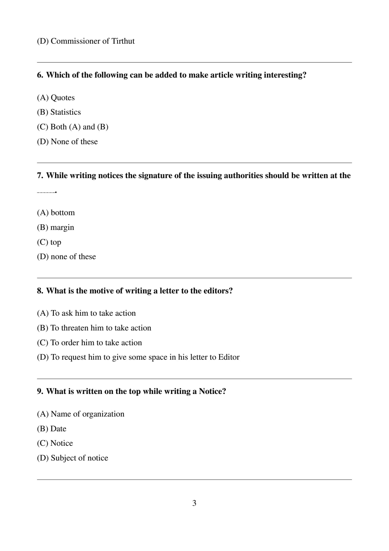 - (D) Commissioner of Tirthut