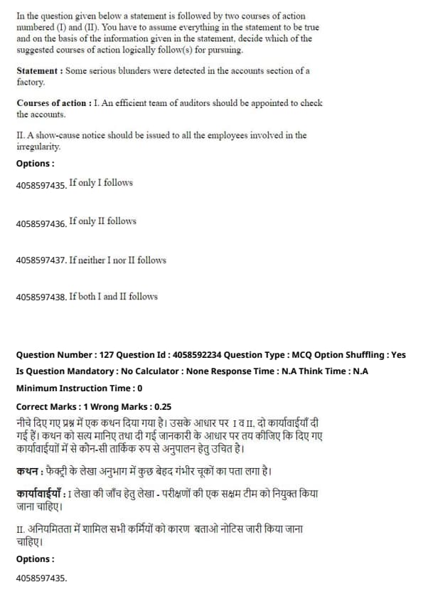 Course of action II is also valid, as issuing a show-cause notice to employees involved in the irregularities is necessary to hold them accountable for the mistakes.