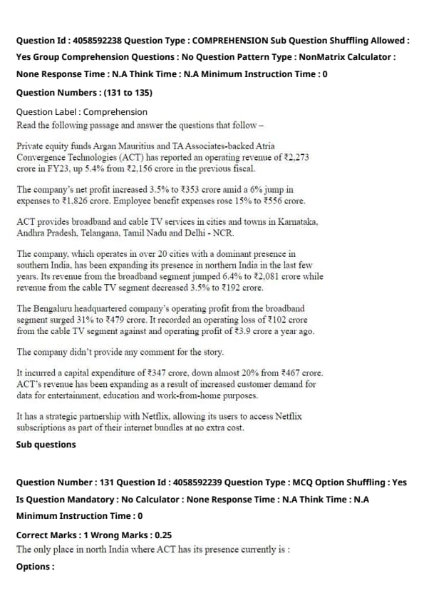 The passage states that ACT’s operating profit from the broadband segment surged by 31%. Therefore, the correct answer is 31%. Quick Tip: Pay attention to specific figures mentioned in the passage related to growth or changes in company metrics like operating profit.